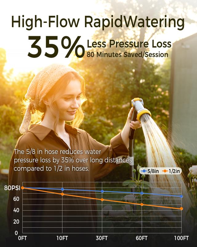 Our abrasion-resistant hose delivers exceptional performance with a rating of up to 348psi. Superior sealing technology prevents leaks and ruptures.