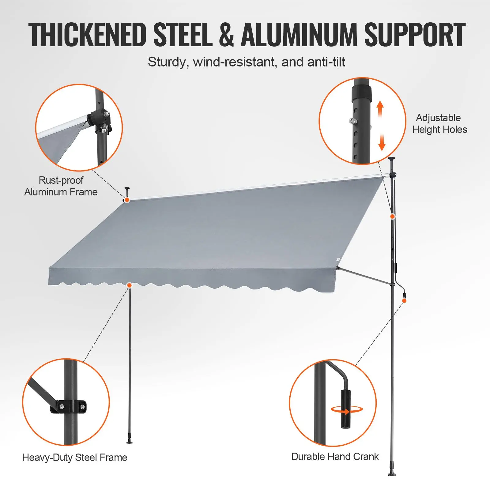 • Easy to Adjust: This manual retractable awning allows for height adjustments between 86-122 inches, accommodating various door and window heights, providing flexibility for your outdoor space.