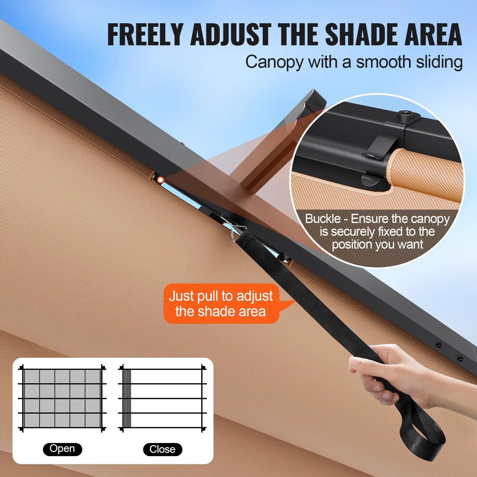 • Adjustable Shade Canopy: Equipped with an adjustable retractable canopy and built-in sliding track design, you can easily adjust the shade area as needed. Whether you need shade on scorching hot days or protection during light rain, this pergola offers the best comfort experience, allowing you to enjoy the perfect balance of sun and shade.