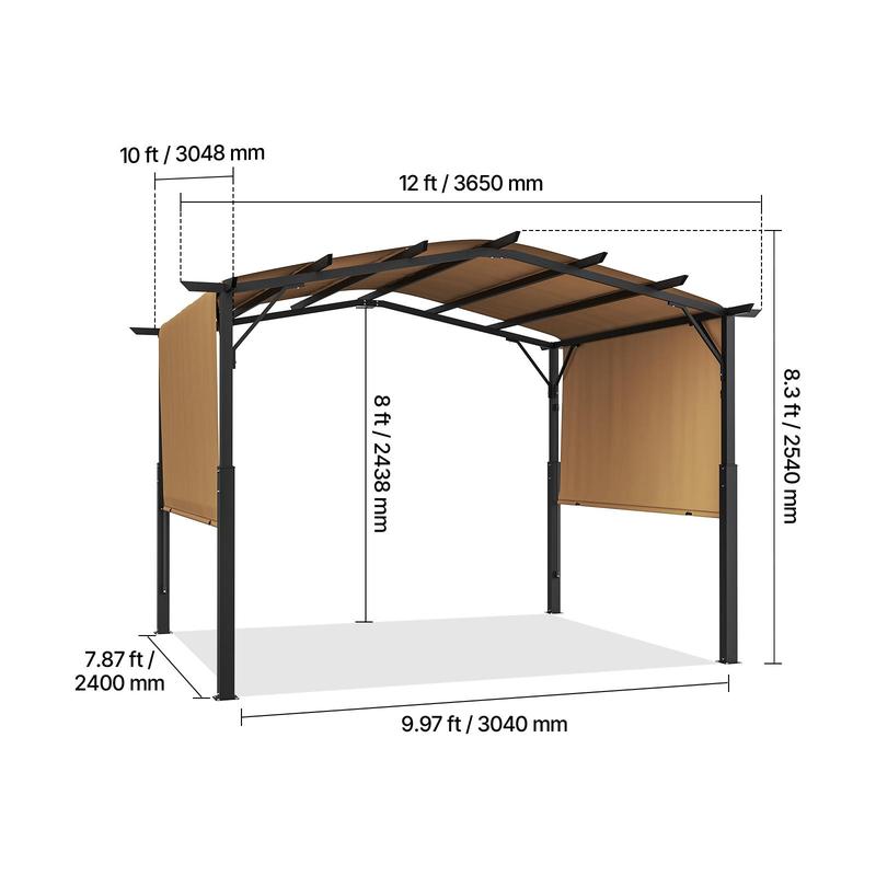 ·Stylish Appearance: Our 12x10 ft outdoor pergola provides 120 square feet of shaded area, ideal for pairing with tables and chairs (NOT included). The convenient sliding track allows you to easily adjust the canopy on either side, offering a customizable and flexible way to create your ideal sunshade zone with a personal touch.