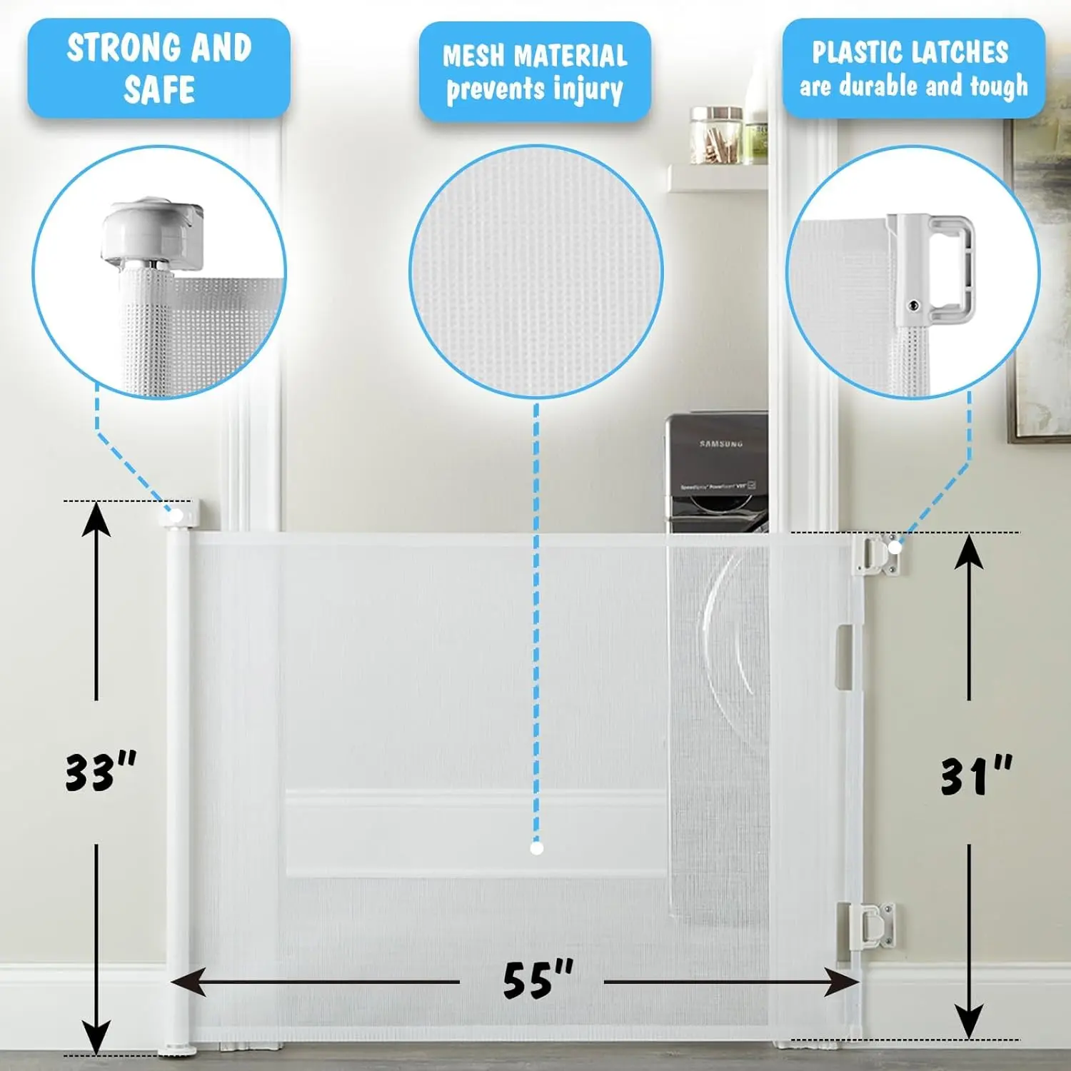 In conclusion, this retractable baby/pet gate makes an excellent addition to any home organizer collection. With its adjustable feature, sturdy polyester construction, rusted resistant plastic, & a weight capacity up-to 10 -15 kg make sure you get one today!