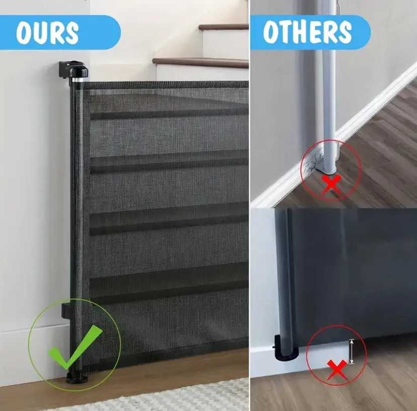 The Retractable BABY/PET Gate is an essential home organizer for parents and pet owners. It is perfect for keeping your little ones and pets safe and secure in any room of your house.