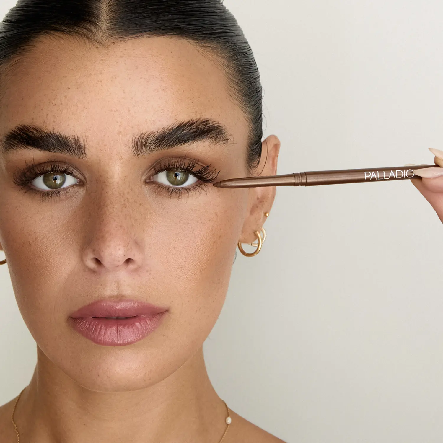 To create bold, defined eyes, start by gently drawing a line along your upper lash line with the Palladio Retractable Eyeliner. The smooth, creamy formula glides on easily, allowing you to achieve precise definition or a soft, smudged look. For a more intense finish, apply the eyeliner to your lower lash line as well. Twist the pencil to reveal more product as needed and always twist it back down after use to keep it secure. The retractable design makes it convenient for on-the-go application, without the need for sharpening.