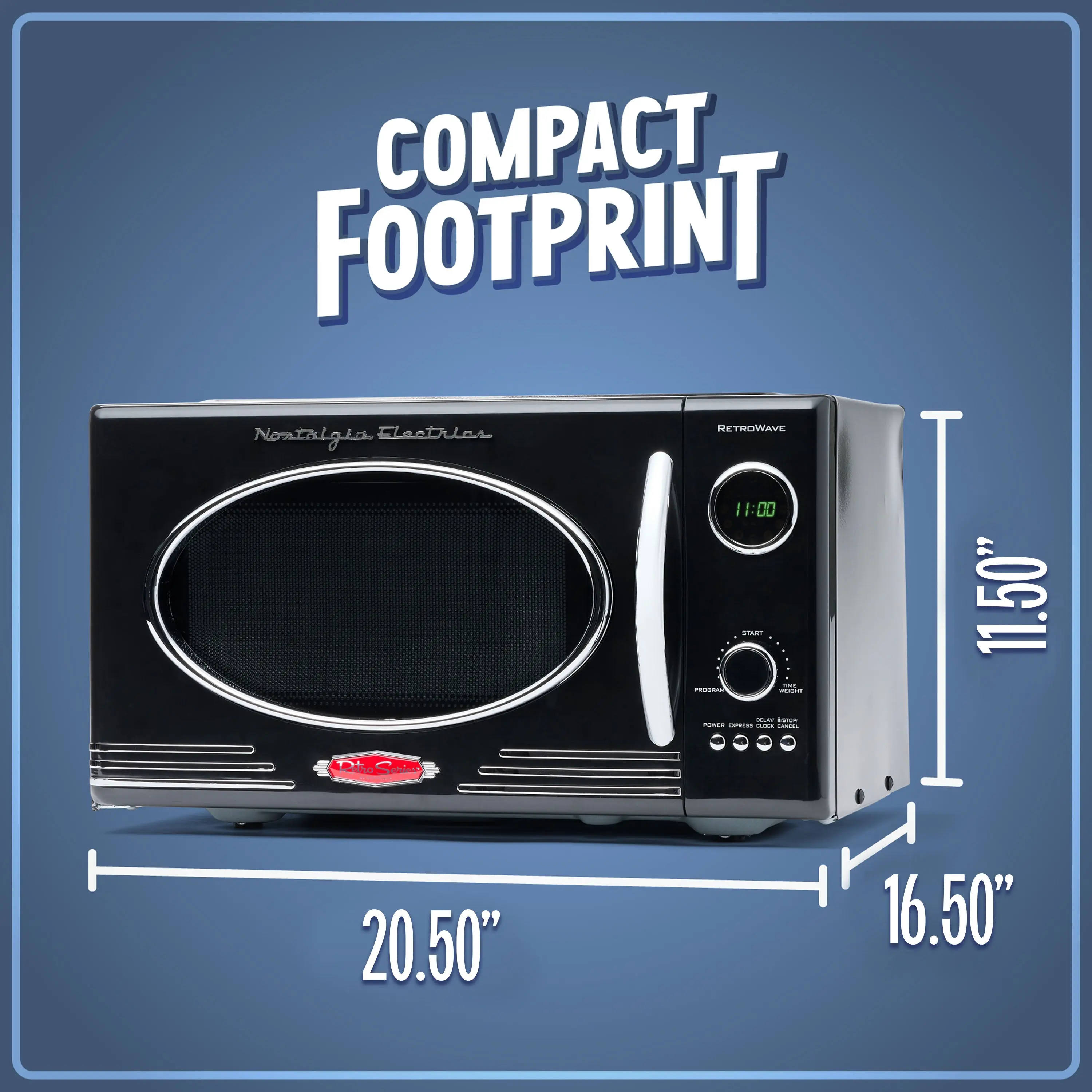 ·Sleek Chrome Door Handle: Control panel, and accents add a fun and flair to this unique retro-styled appliance.