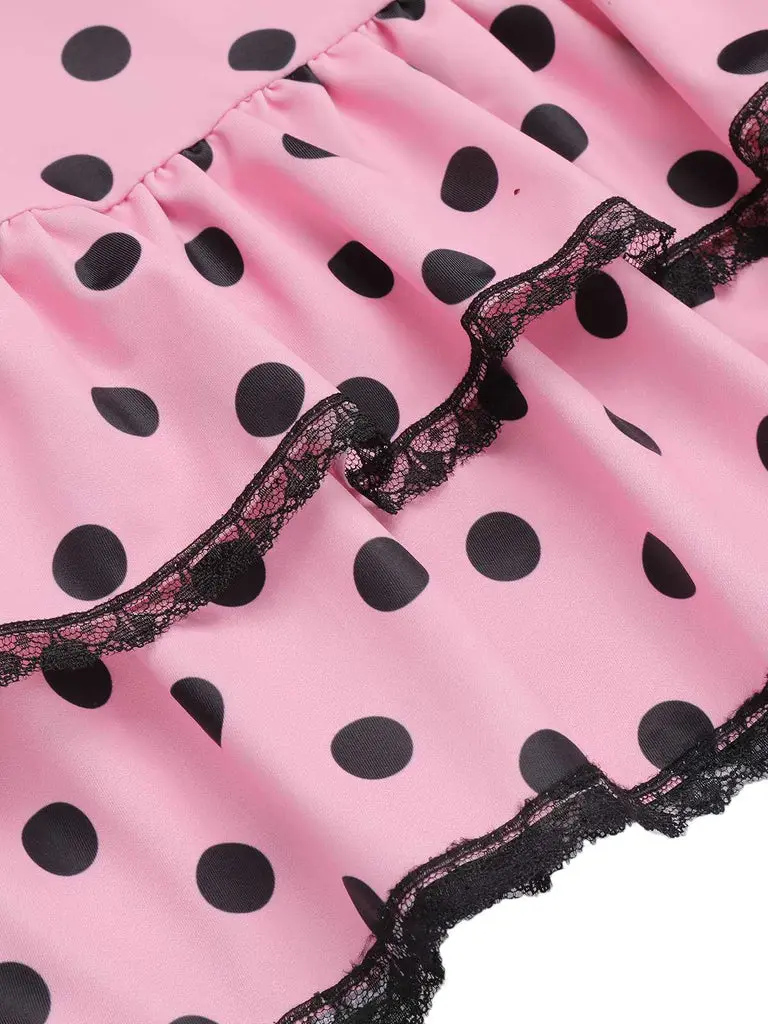 5. PINK 1940S HALTER POLKA DOTS BOW ONE-PIECE SWIMSUIT Vintage Charm Dainty Bow Ruffled Hem Comfortable Fit Backless Design Womenswear Comic Womenswear