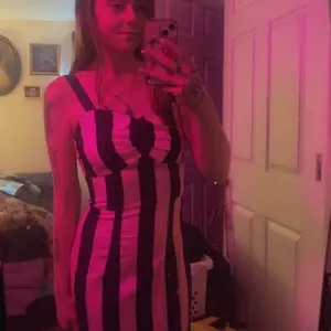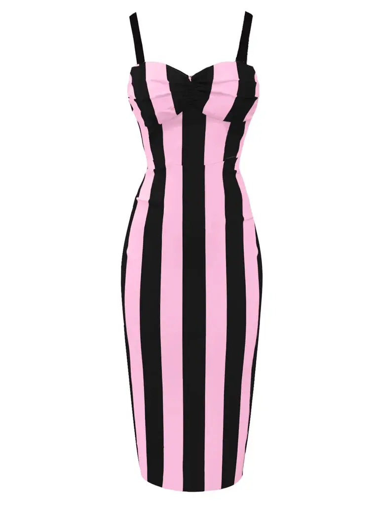 BLACK&PINK 1960S VERTICAL STRIPE STRAPS PENCIL DRESS Bodycon Womenswear Striped Flair Classic