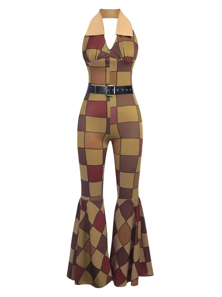 5. 1970S GEOMETRIC PATTERN PATCHWORK HALTER JUMPSUIT Womenswear Overalls