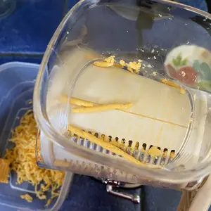 Chops ingredients up to 12 times faster than other graters. With 5 replaceable blades, no cutting skills are needed. Simply turn the handle for sliced, shredded, or wavy textures. Prepare cheese, potatoes, zucchini, carrots, cucumbers, and chocolate effortlessly.