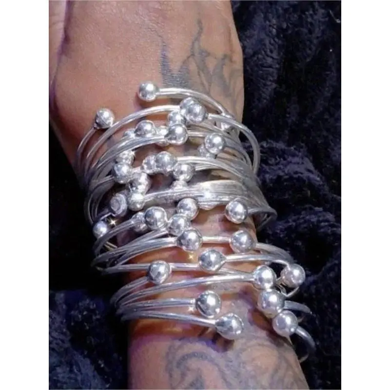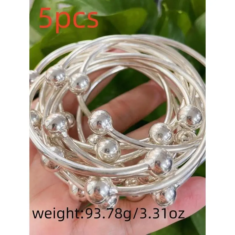 5. 5pcs/10pcs Retro Boho Thick Bangles,Ball Silvery Bangles Bracelet, Boho Stacking Bangles, Handmade Silvery Bangles for Women Daily Party Jewelry Gifts silver