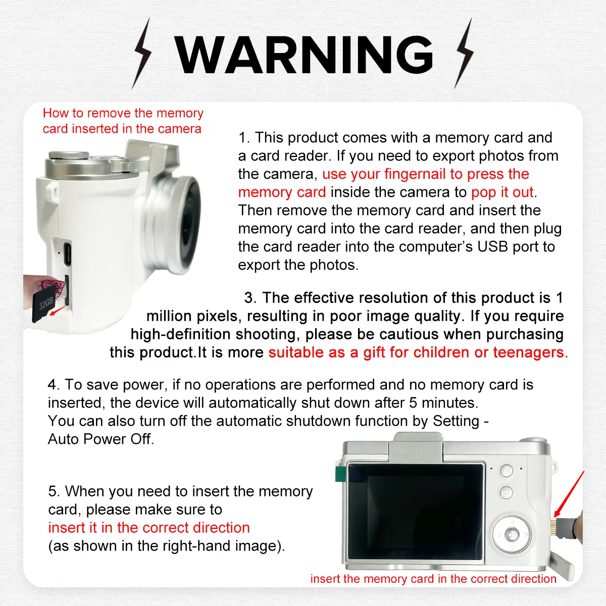 · 【 Rich Accessories Included】 – Memory card, card reader, strap, stickers, Camera bag, charging cable, and user manual.