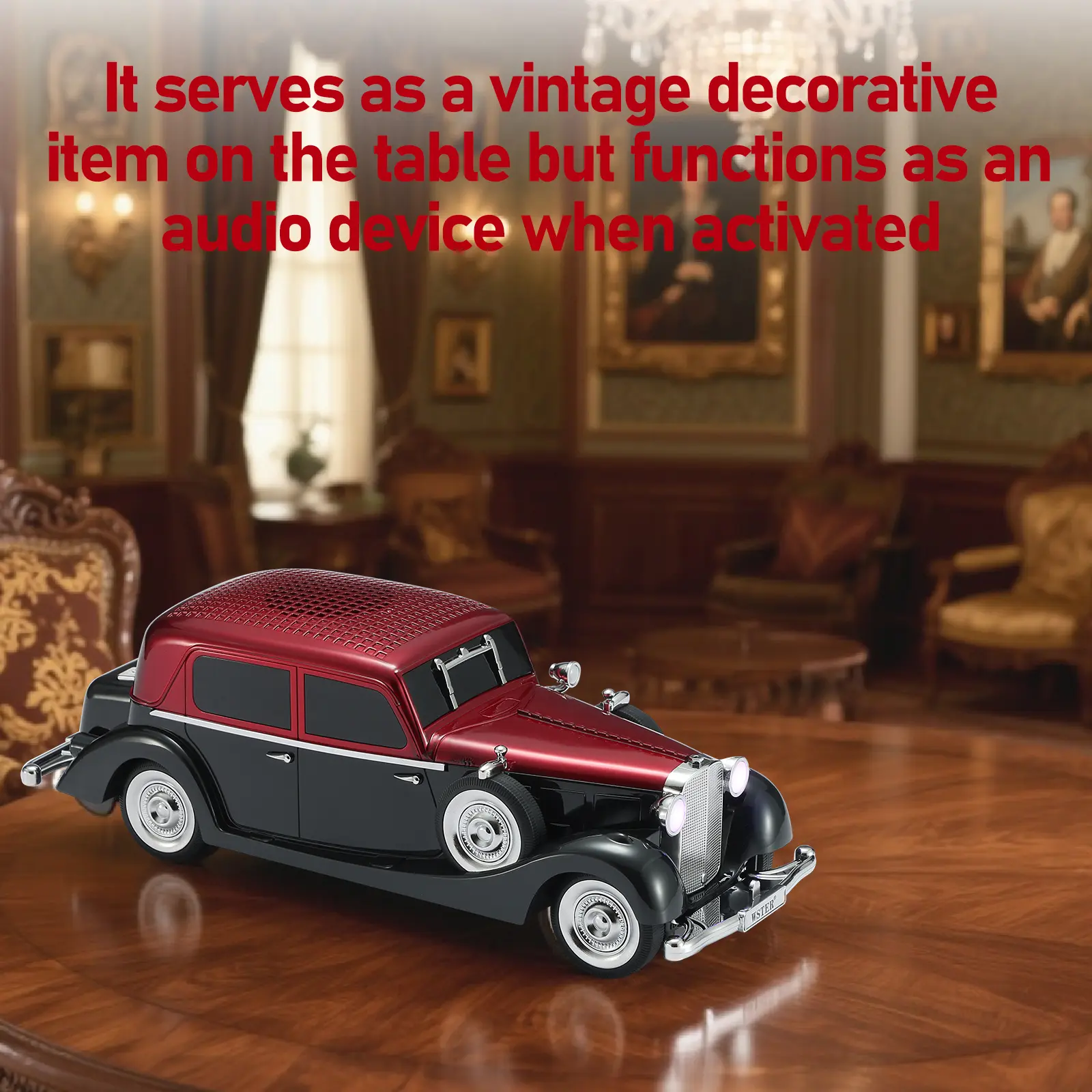 Imagine adding a splash of retro cool to your music setup with this car-shaped Bluetooth speaker. More than just a funky decoration, it delivers rich stereo sound via Bluetooth, USB, TF card, AUX, or FM radio. Whether you're hosting a lively indoor party or chilling outdoors, this compact speaker keeps the tunes flowing. The True Wireless Stereo (TWS) feature lets you pair two speakers for an immersive audio experience, perfect for those who want to feel every beat. Easy push-button controls mean no fumbling—just straightforward music enjoyment. Plus, the built-in LED lamp adds a subtle glow, enhancing the vintage vibe. Inside the box, you'll find the speaker ready to rock with its rechargeable 1500mAh battery, USB Type-C charging cable, and user manual. If you're hunting for a unique birthday gift or a multifunctional desktop decoration that doubles as a party essential, this retro car speaker is your go-to. Ready to rev up your music game? Grab one and let the good times roll!