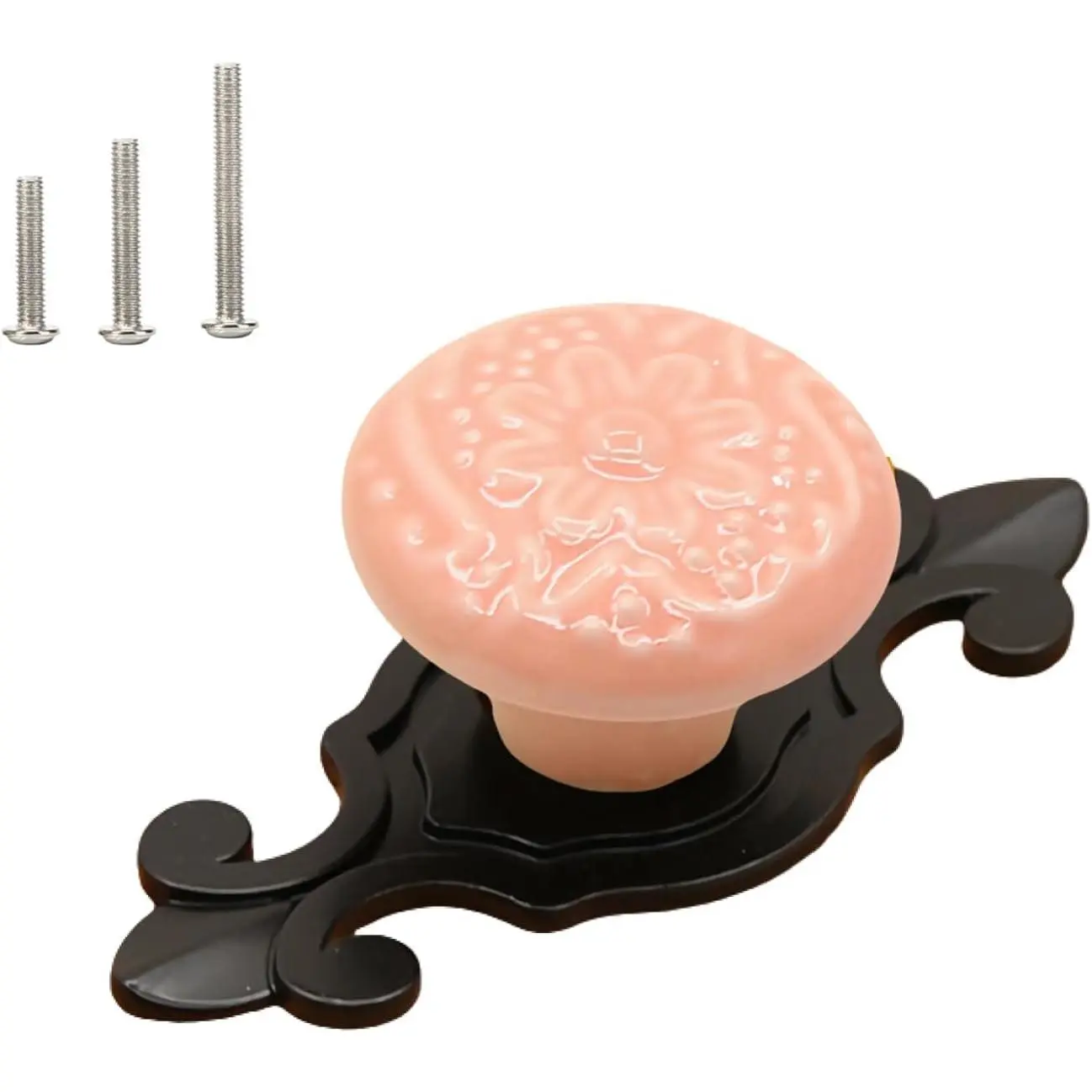 Package: 10PACK Knobs Set ( each set including 1 Petal alloy top+1 ceramic knob+1 alloy base) + 30 count Screws (10 PCS 22mm,10 PCS 25mm,10 PCS 40mm)