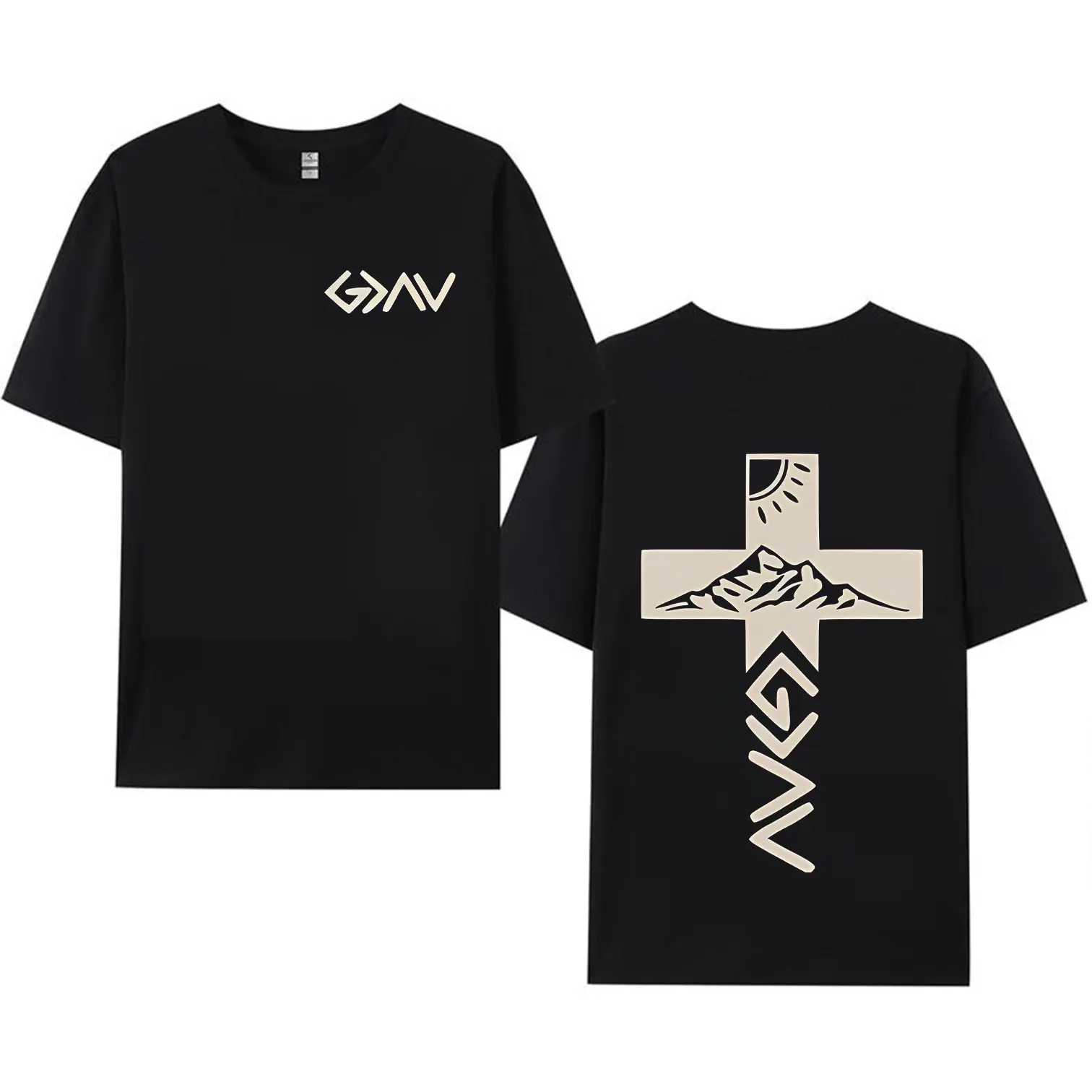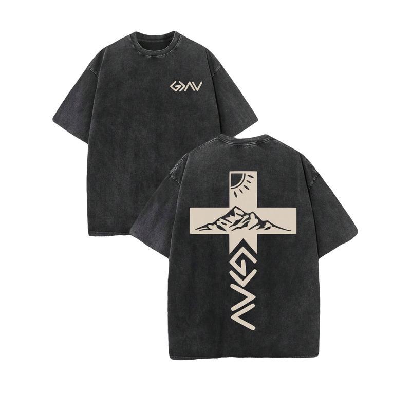 Retro Washed T-Shirt Double Sided Printed Material & Design: This 230 Pure Cotton T-Shirt features a double-sided print. The front showcases the text "God Is Greater Than Our Highs And Lows," while the back displays a mountain cross design. Perfect for men's casual wear, it offers comfort and fashion. Versatility: Ideal for various occasions, this t-shirt is a great Christian gift. It suits men's casual outfits and street style. The vintage and distressed styles add a unique touch, making it suitable for daily wear and special holidays. Product Selection: Our merchandise is extensive, catering to men, women, and youth. With a wide range of colors and sizes, there's something for everyone. The whimsical designs blend playful quaintness and fanciful charm. Occasions: Whether for special events, festive gatherings, or any momentous occasion, this t-shirt fits right in. The whimsical design resonates with those who appreciate the unconventional and amusing.