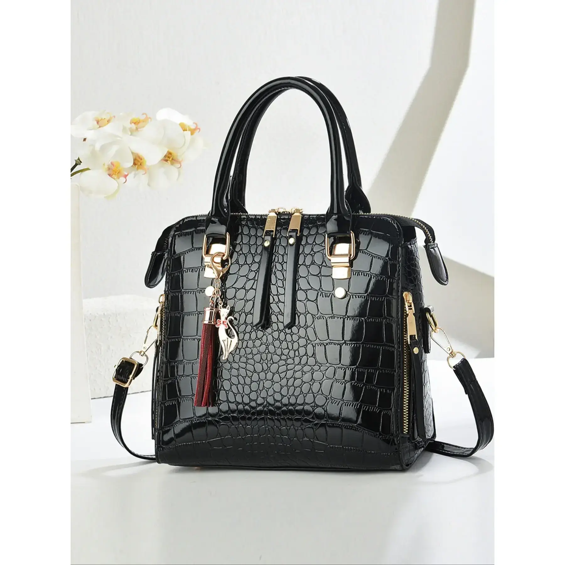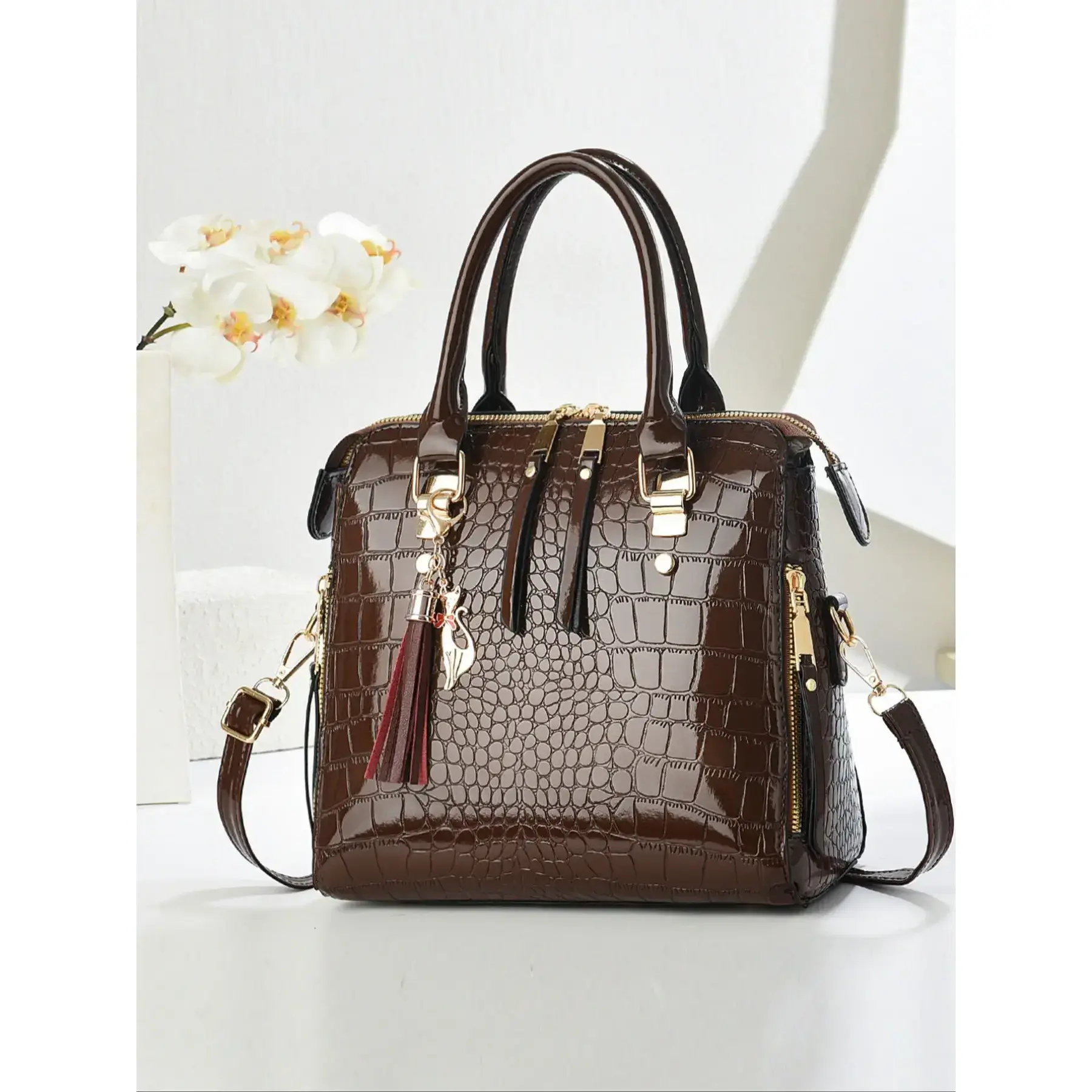 Crocodile Pattern Fashion Retro Handbag, Large Capacity Crossbody Bag, Stylish Design, New Women's Shoulder Bag for Travel Shopping, Embellished Shoulder Bag