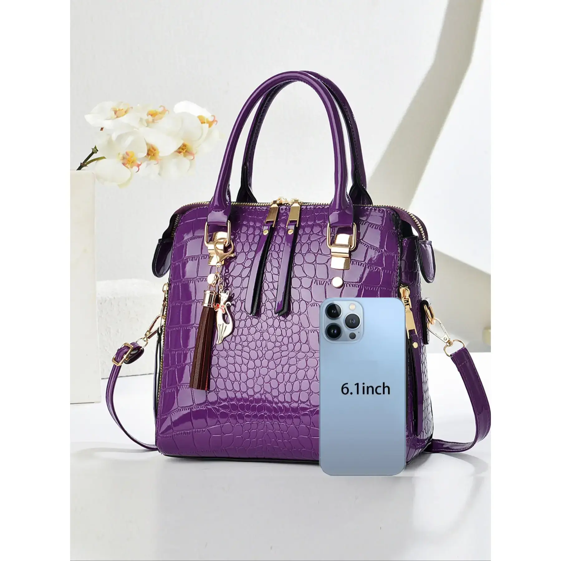 【Multi-functional capacity】: This bag features multiple compartments, allowing you to organize your belongings efficiently while on the move. 【Crocodile pattern】: The unique crocodile texture sets this bag apart, offering a chic and retro aesthetic that complements various looks. 【Versatile carrying options】: Equipped with both shoulder and crossbody straps, this bag provides flexible carrying solutions for any occasion. 【Large size】: The generous dimensions are perfect for carrying essentials, making it suitable for travel, shopping, and daily activities. 【Seasonless use】: Designed to suit all seasons, this bag can easily adapt to various weather conditions and outfit choices.