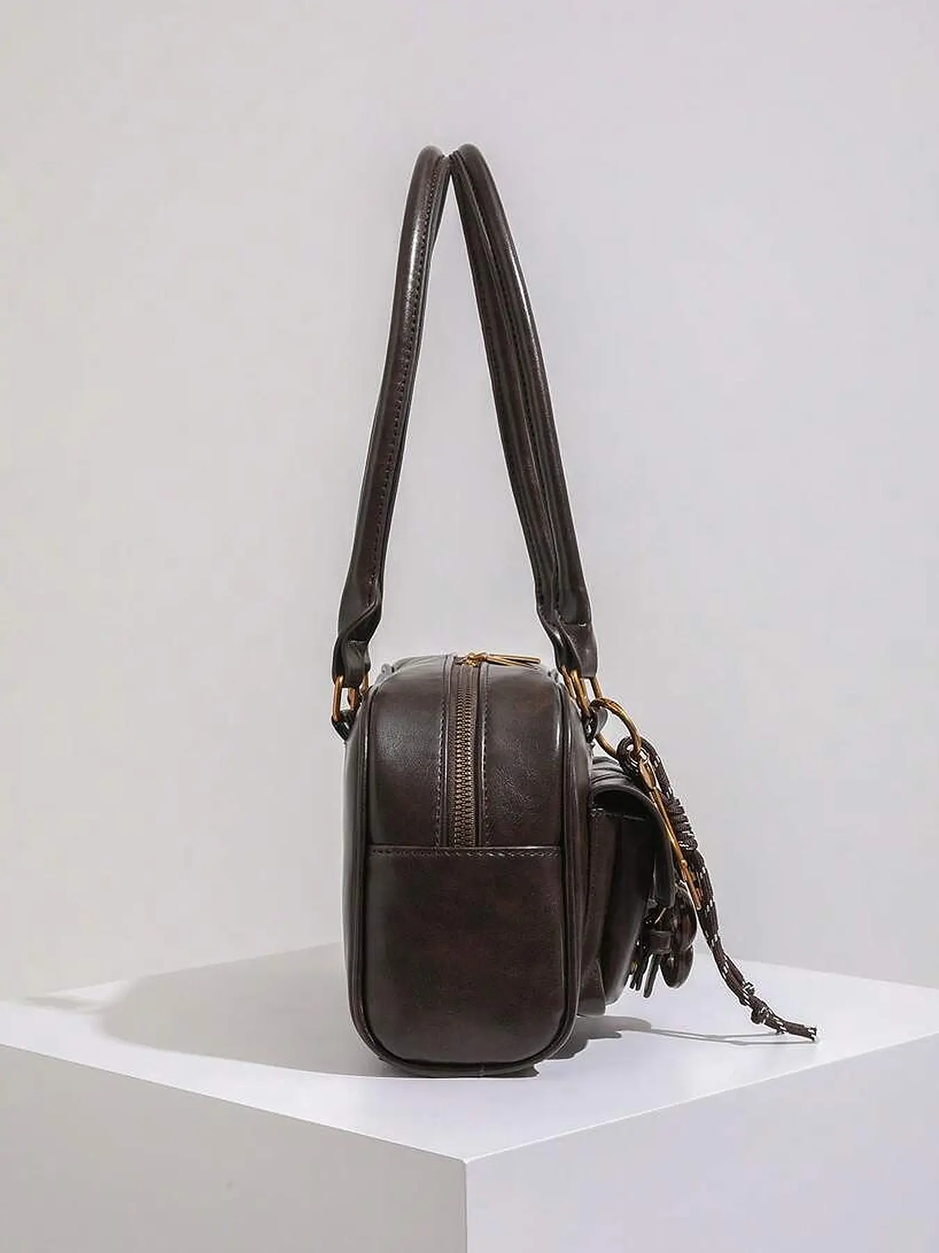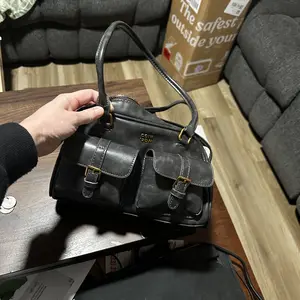 So cute! Arm handles are longer than I expected but I like it because the bag can go right under underneath my boob. The leather looks really nice and there’s a lot of space inside the bag I am a little worried about the zipper breaking but it hasn’t so far love it!