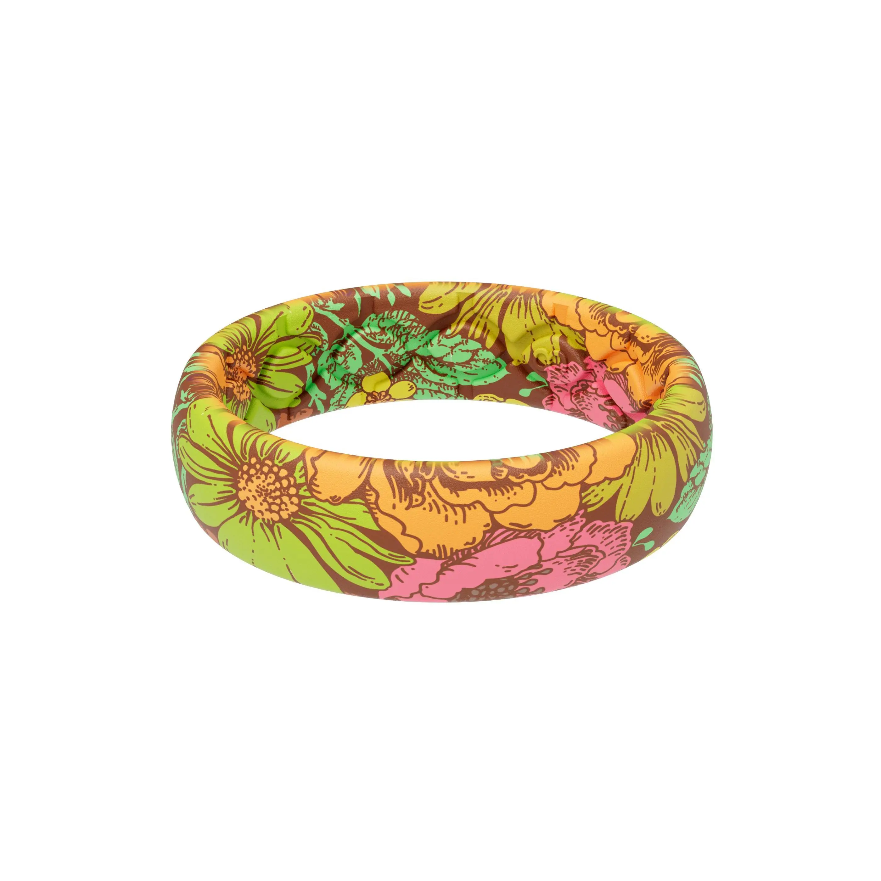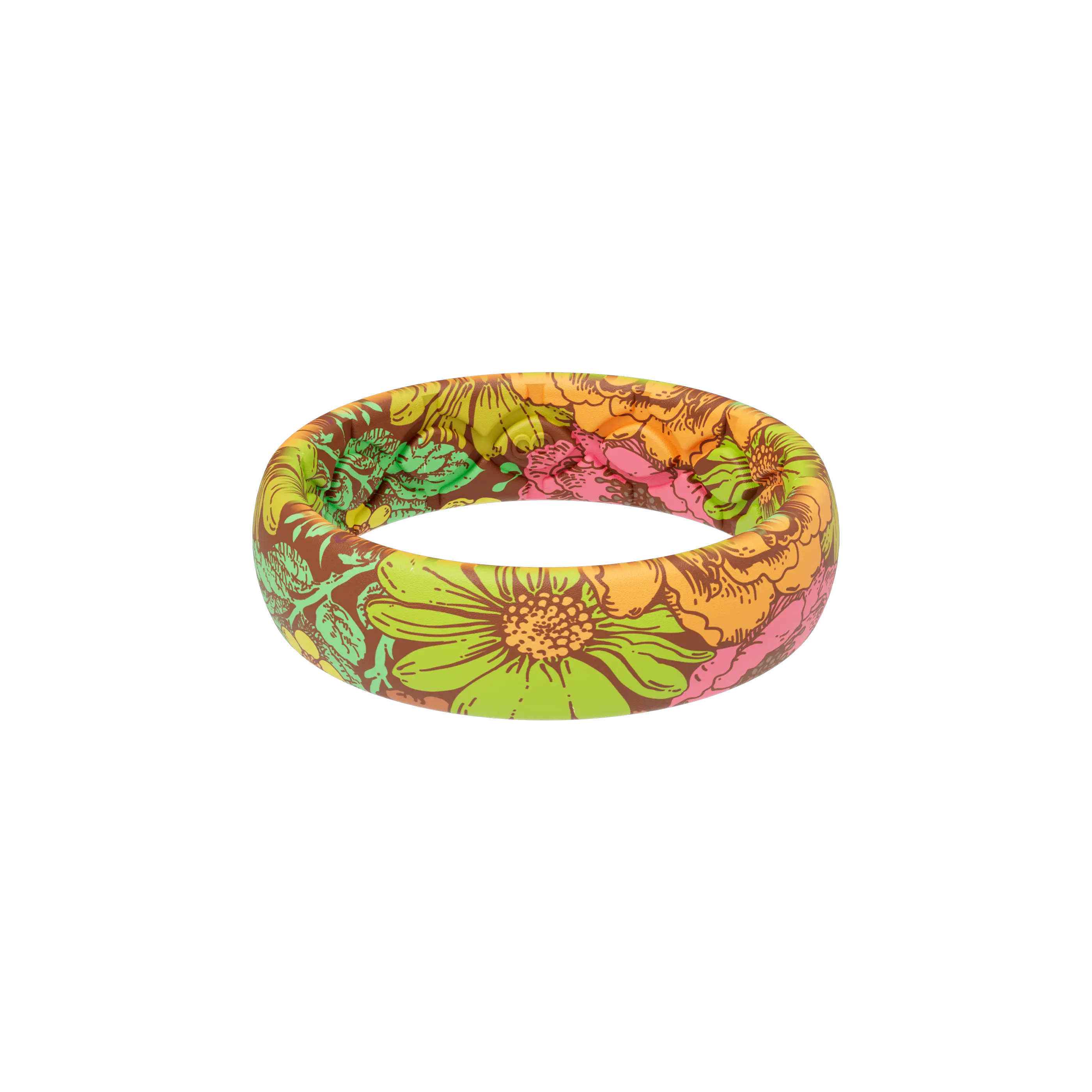 The ring is comfortable and correctly sized, but the pattern is not as pictured. It’s low quality, almost grainy or pixelated. The edges of the ring are faded and there’s some sort of dark line that looks like a seam. The photos make the pattern look really clear, bright, and saturated, and this isn’t that!
