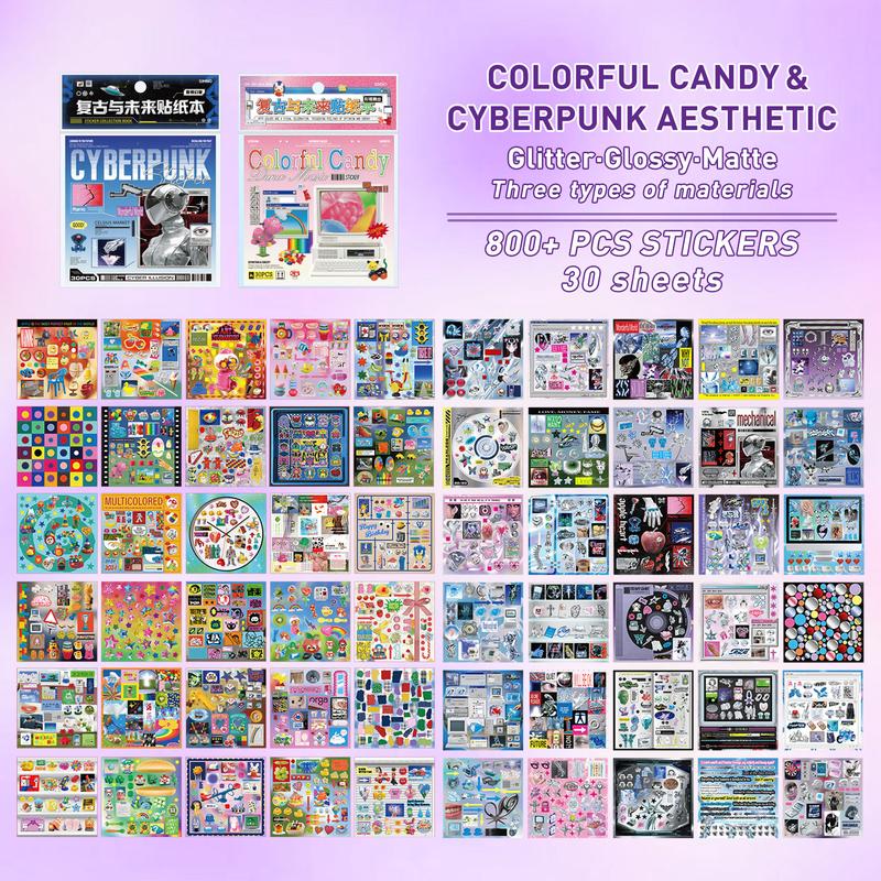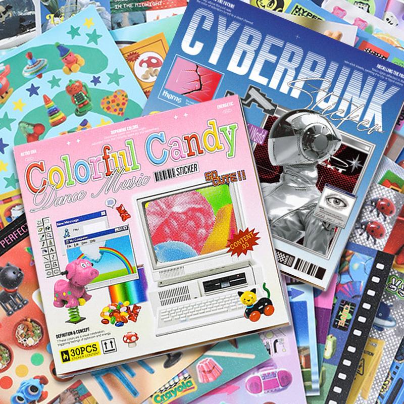 ✨ Step into a universe where vintage charm collides with futuristic energy. This 30-sheet sticker book features two unique aesthetics—Cyberpunk Neon and Dreamcore Cute Fantasy. Perfect for journaling, scrapbooking, planners, vision boards, craft projects, and more. If you love bold colors, soft dreamscapes, or anything aesthetic… this book was made for you.