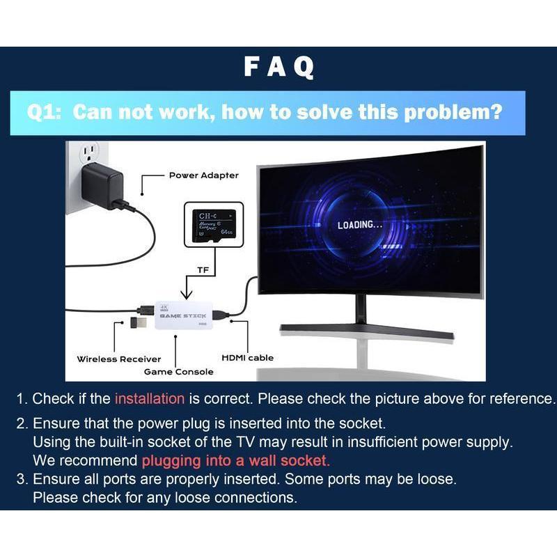 Important notes for product installation and use: Please do not use the TVās power port for power supply. This can lead to insufficient power, preventing proper operation. Instead, use a charger with a power rating of 1.5A or higher. If you encounter any issues, do not worry. Contact customer service immediately, and we will provide top-notch after-sales support.
