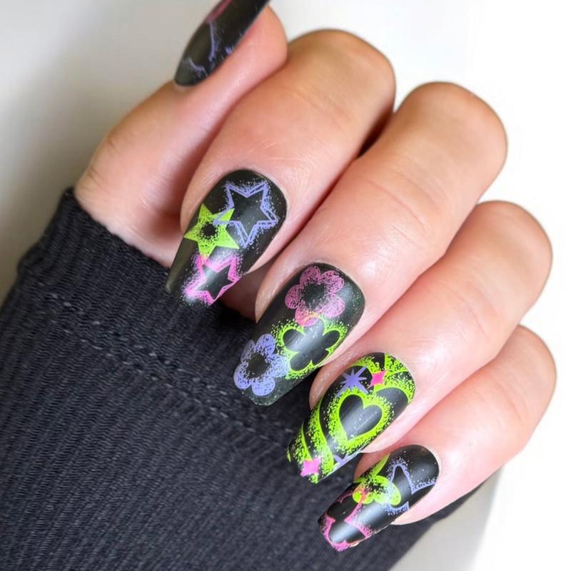 Catch a glow that vibes with you! Airwave Aura stamping plate is packed with dreamy aura glow shape designs like stars, hearts, butterflies, flowers, and more. These soft, radiant shapes give your nails that 90s airbrush magic, like mood rings for your mani.