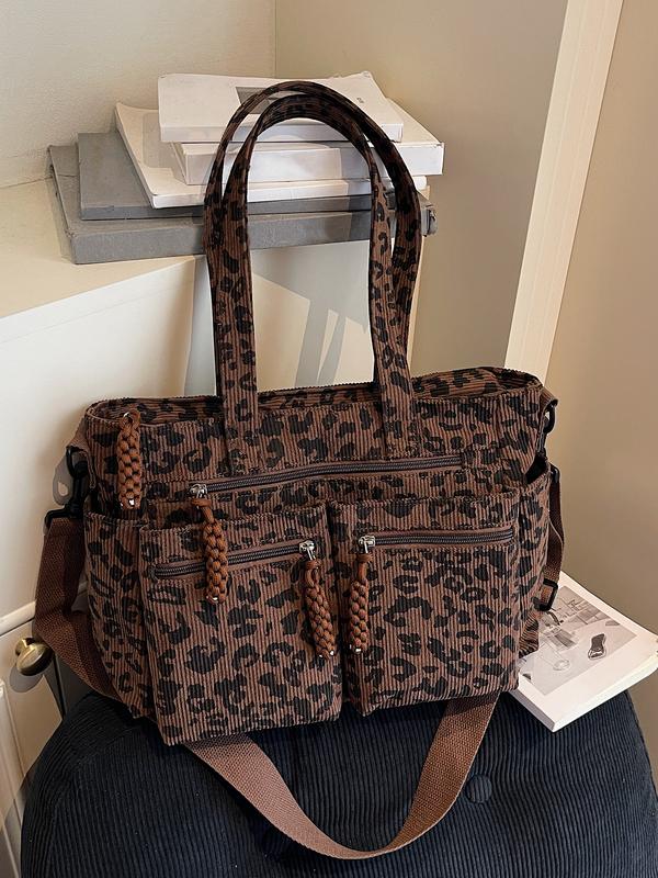 Retro leopard print fashionable shoulder bag, niche minimalist casual shoulder bag, personalized lazy leopard print multi pocket design, practical clown, suitable for students' daily commuting and shopping, Crossbody Tote Bag