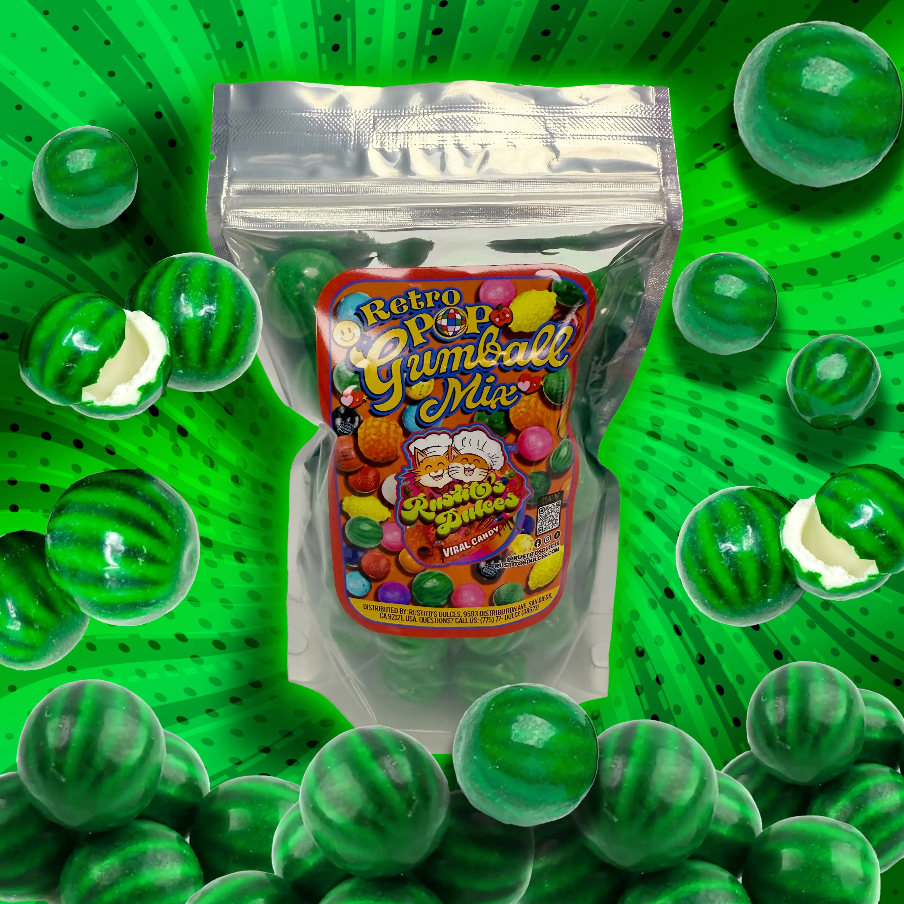 Watermelon - Watermelon-flavored gumballs only. Each gumball has a sweet watermelon shell with candy powder inside.