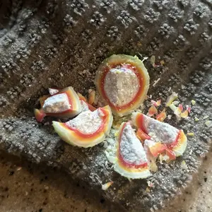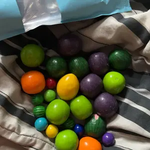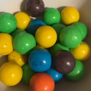 Ingredients: SUGAR, GUM BASE, CORN SYRUP, DEXTROSE, VEGETABLE OIL (COCONUT, PALM), GLYCERIN, ARTIFICIAL FLAVORS, ARTIFICIAL COLORS (RED 40, YELLOW 5, YELLOW 6, BLUE 1), SOY LECITHIN, CARNAUBA WAX