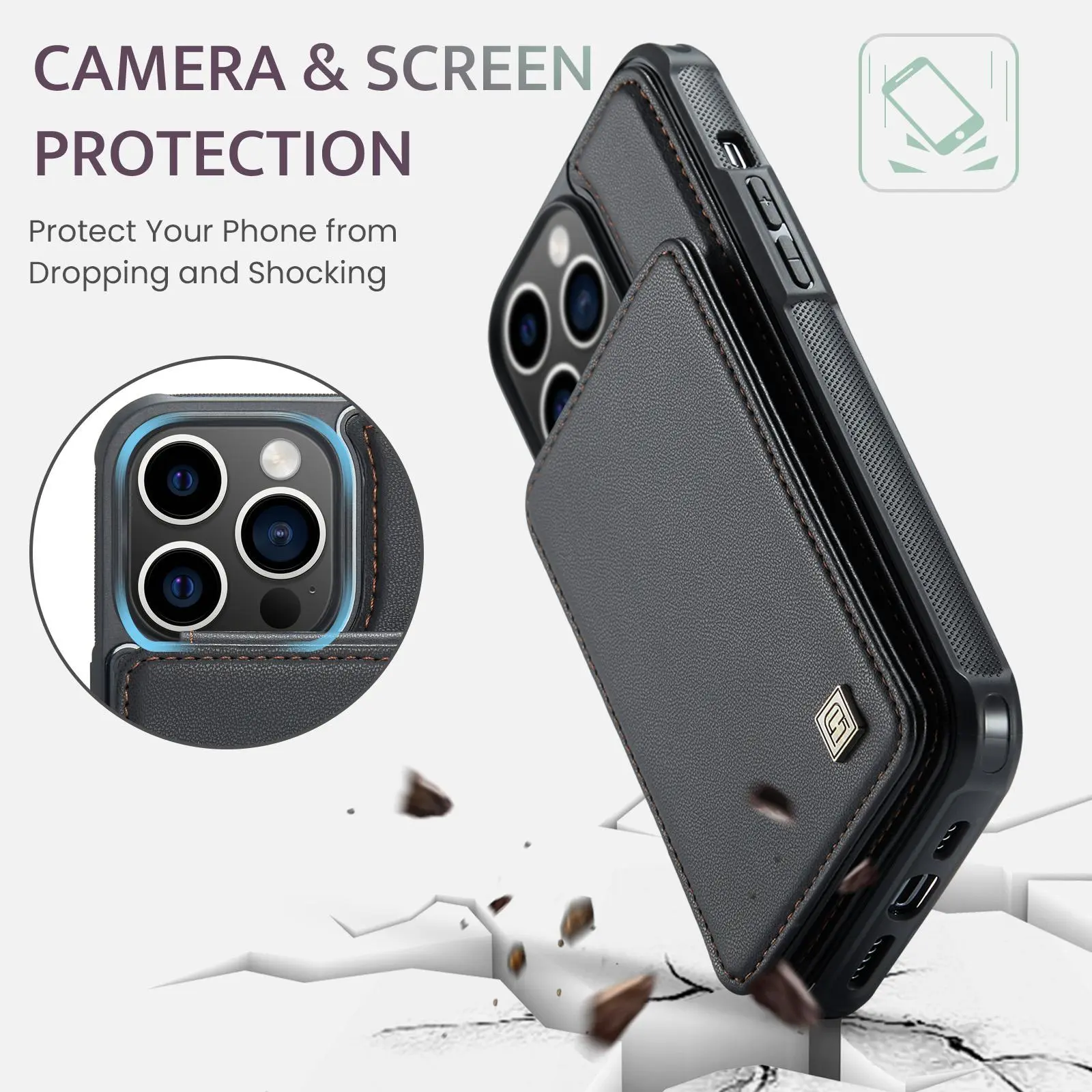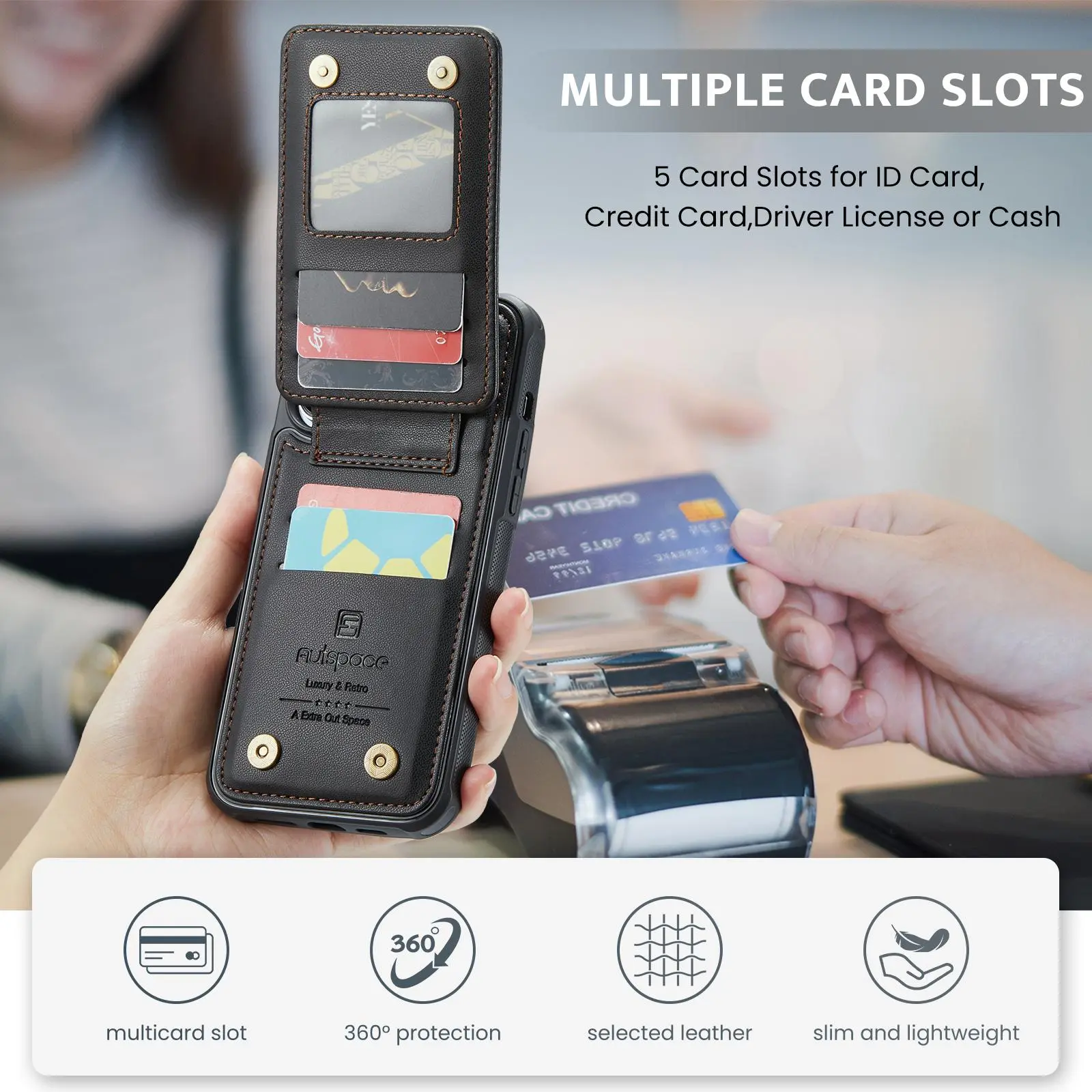 ·Built-in Card Holder Securely store up to 5 cards or cash in the specially designed back card slots—perfect for everyday use.