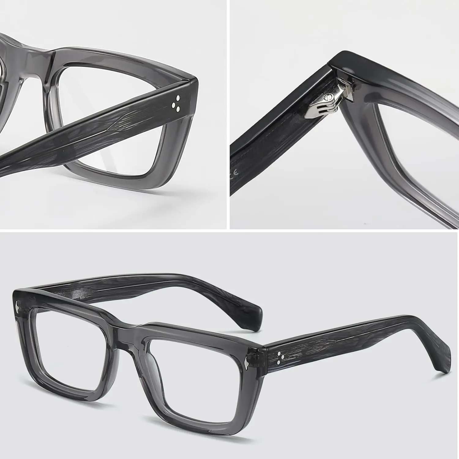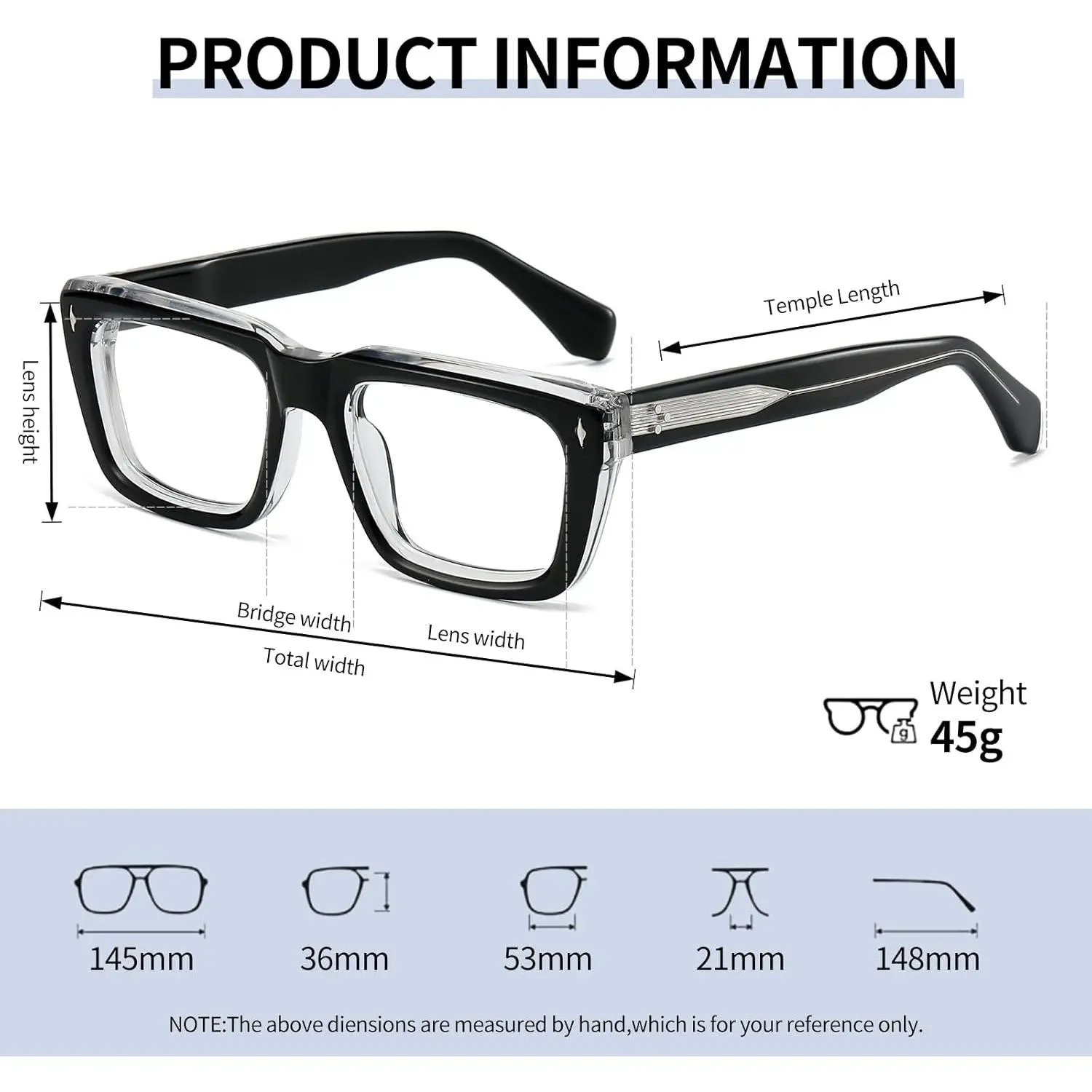 Sutton Retro Rectangle Acetate Thick Glasses Frame Prescription Optical Eyewear for Women Men 53-21-148mm