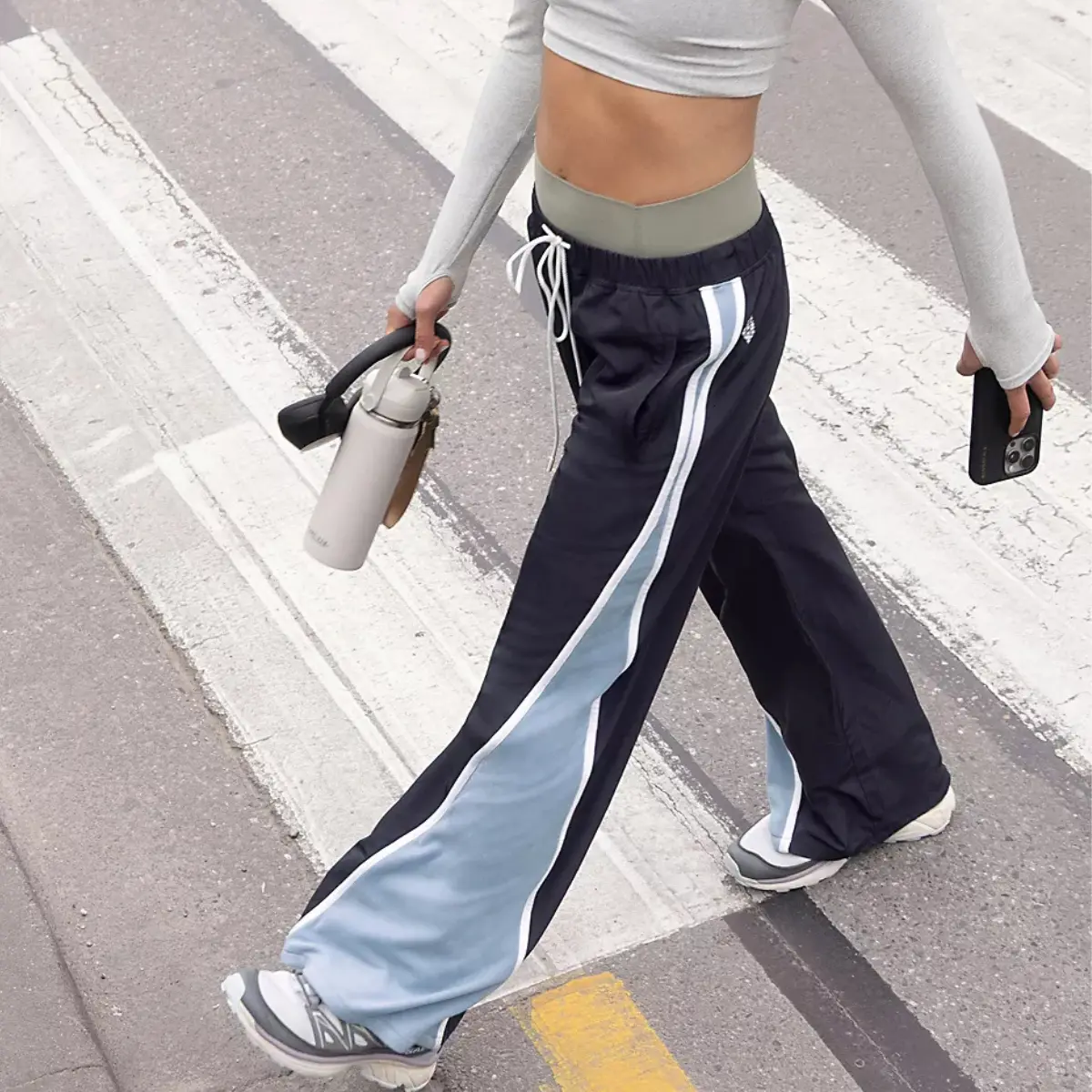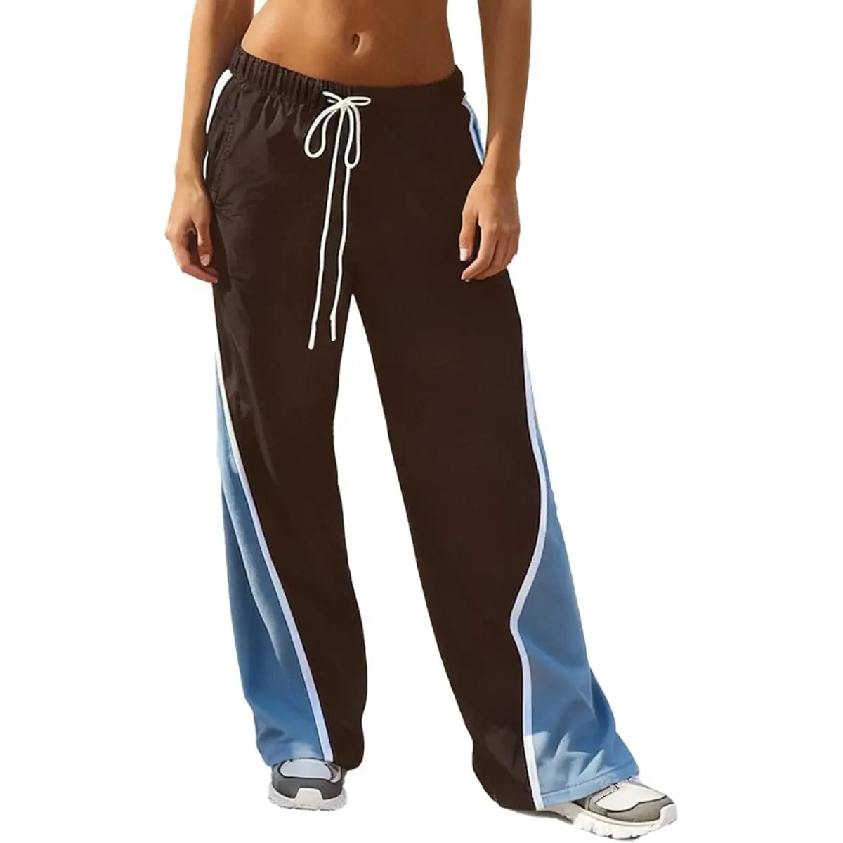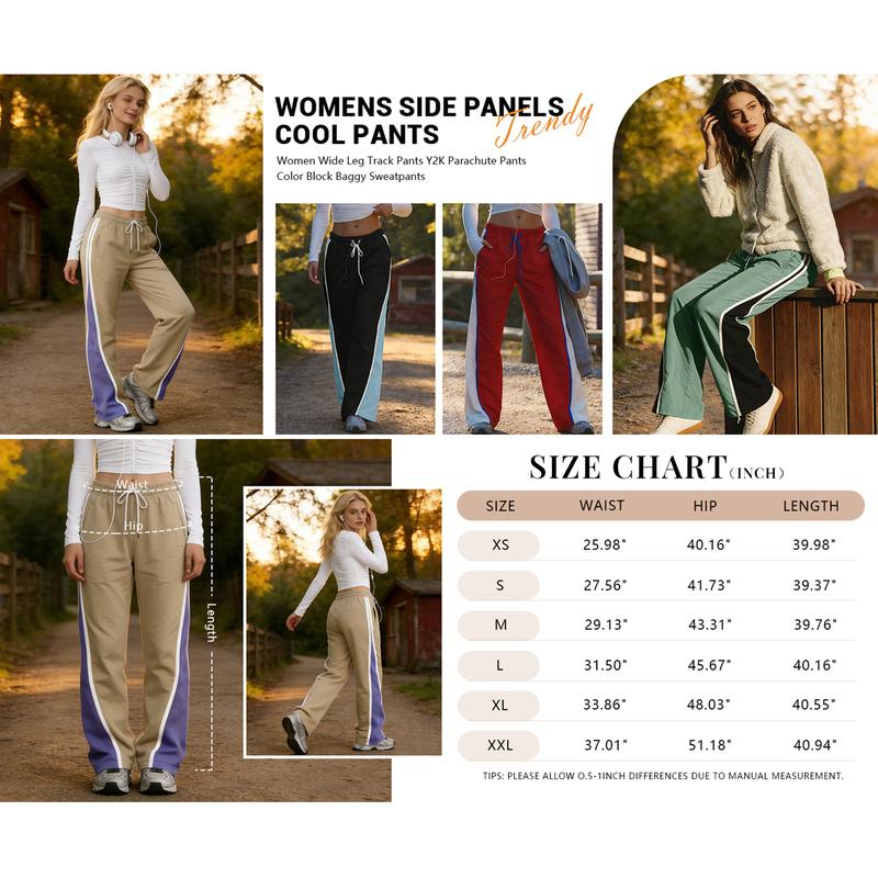 Retro Stripe Track Pants: Athletic Wide Leg Pants High Rise Drawstring Waist Color Block Street to Gym Versatile Styling TikTok Viral Fashion All Season Everyday Streetwear