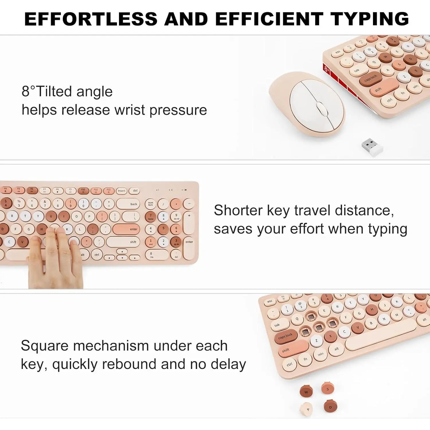 [ Response & Retro Round Keycaps Computer Keyboard] Adopts noise reduction , a square mechanism under each key improved stability, quick rebound and no delay. The retro round concave keycap the shape of your fingertips, and it is comfortable to press, just like typing on an old-fashioned typewriter, and your hands will not feel tired during long-term office work.