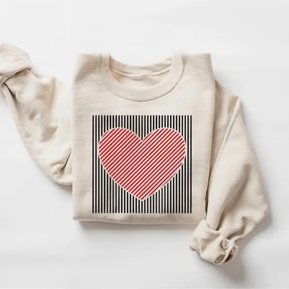 5. Retro Valentines Heart Sweatshirt – cute love design for women, moms, and teachers; cozy Valentine shirt perfect for spreading sweet holiday vibes.