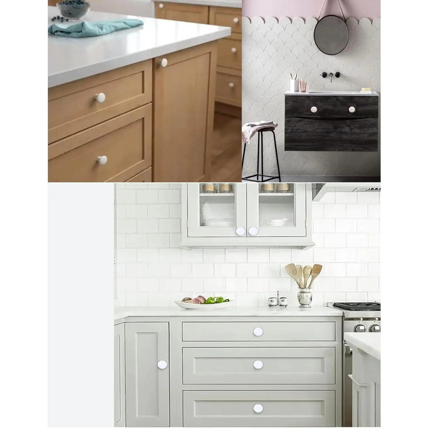 Round ceramic door knobs pull handles, very simple, delicate and practical. A way to liven up a dull kitchen, bringing a life to old furniture.