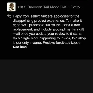 Totally disappointed! Got a totally different hat. Not at all what was in the picture. No raccoon tail, no ears no fuzzy balls. Just a plain furry hat. This was for my son for Christmas too!!!! Never again!!!