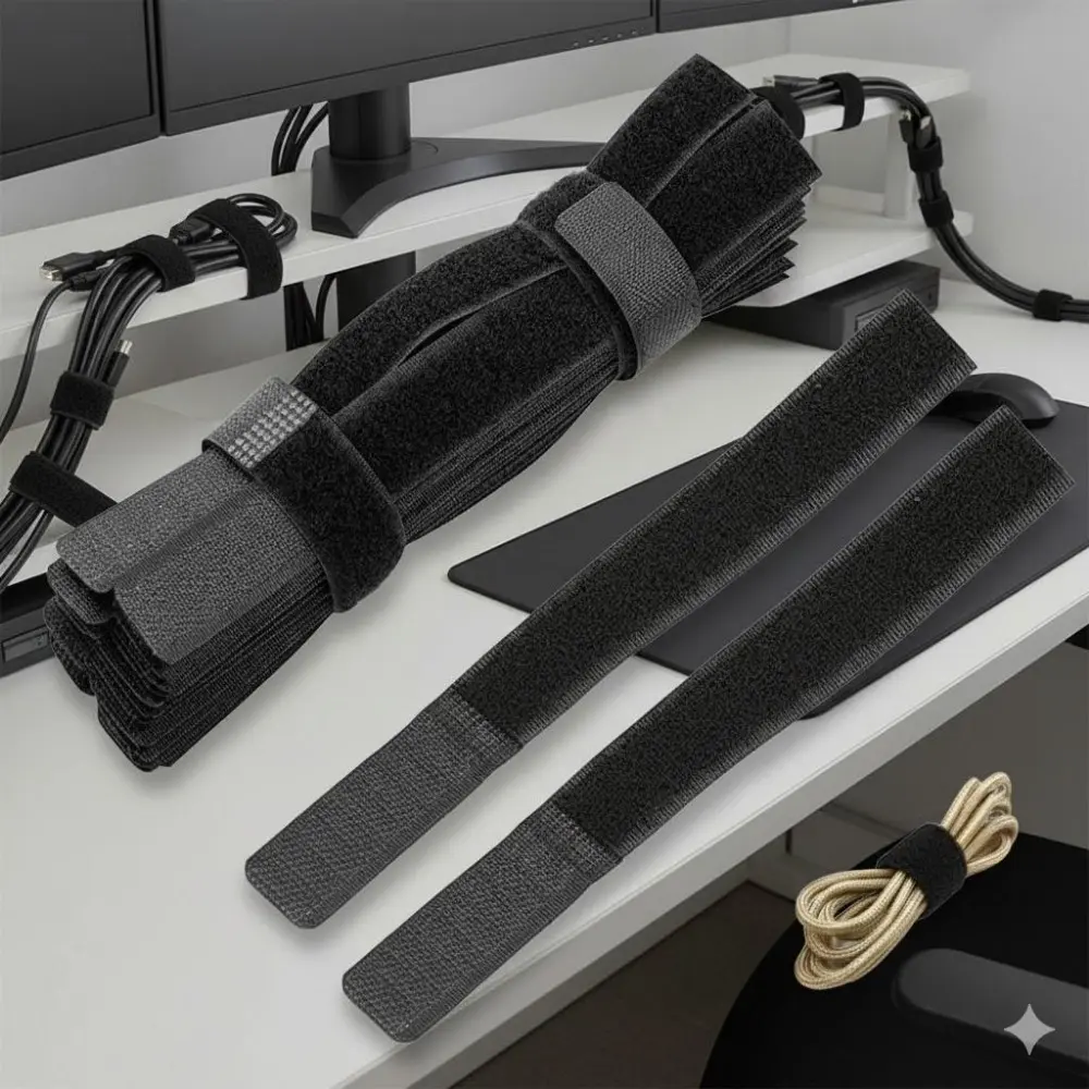 Reusable Cable Ties Set: Multi-Size, Eco-Friendly, Durable & Non-Slip. Strong Wire Organizer for Home, Office, Garage. Anti-Tangle Cord Management, Data Cable Holder, Efficient Fastening Tool.