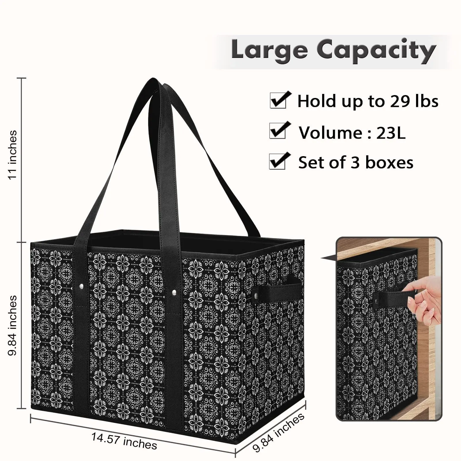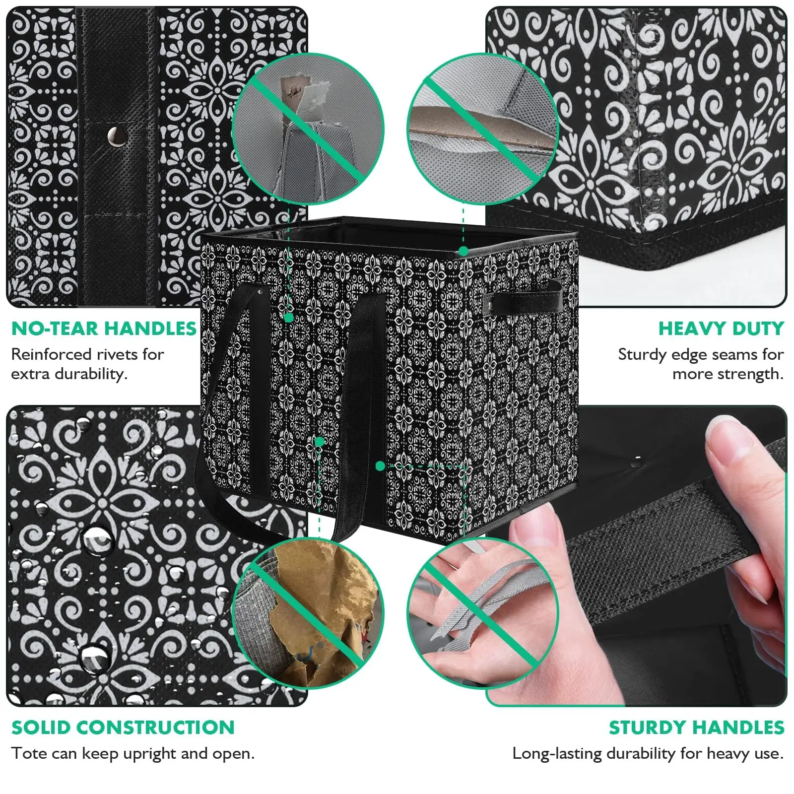 ·Heavy-Duty Non-Woven Fabric: Crafted from heavy-duty non-woven fabric with a water-resistant floral finish.
