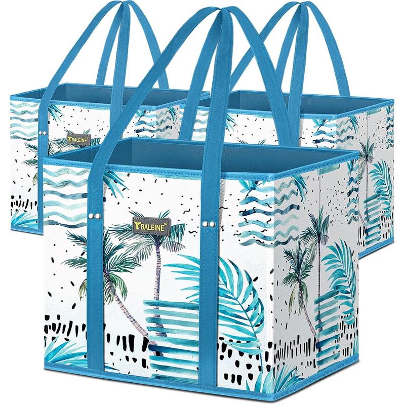 These bags are so sturdy and love that they can “stand up”. So easy to sort and pack items at grocery store and for vacation. They work so much better than my big, floppy TJ Maxx bags that I have been using for a while.