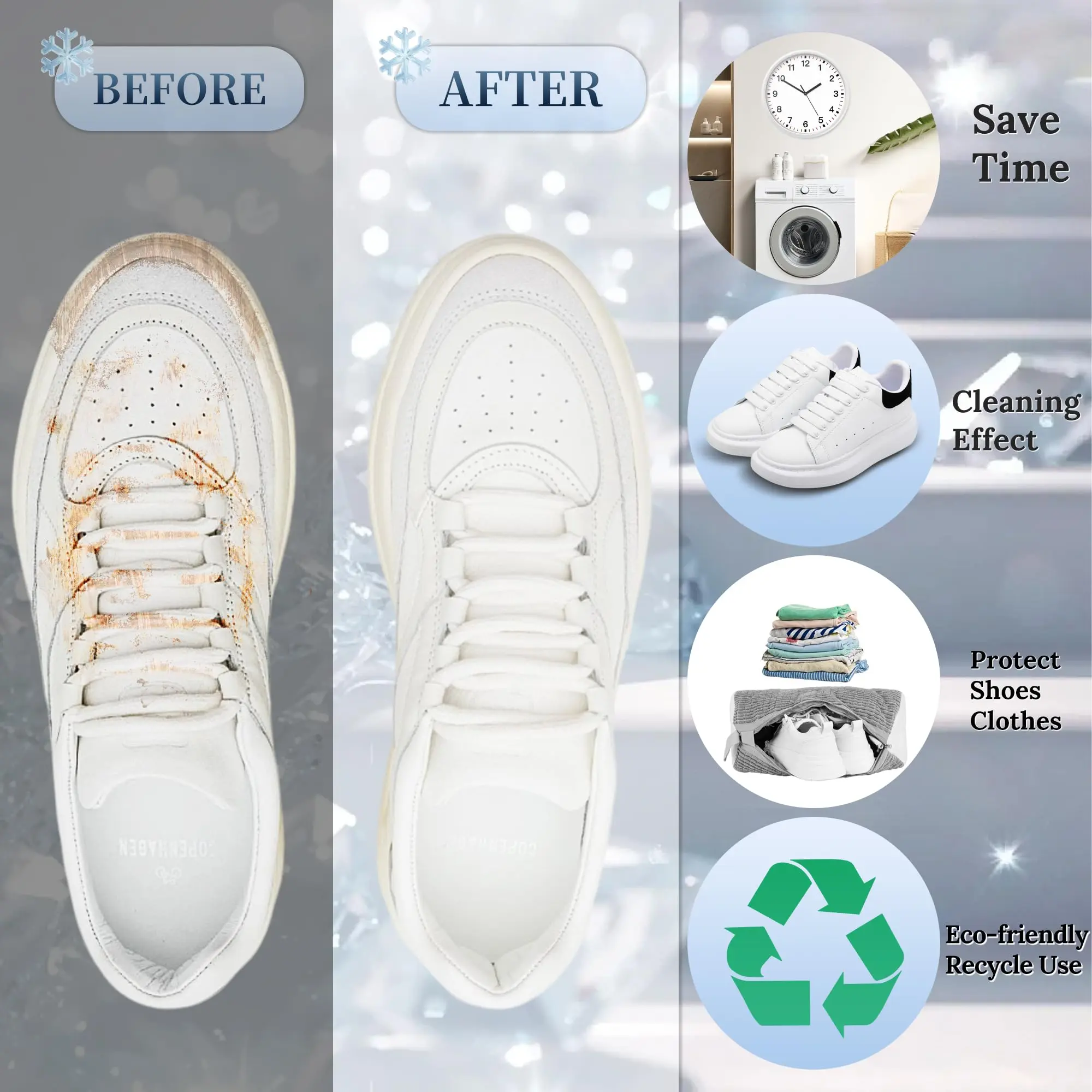 All-round Deep Clean: our shoe washing machine bag has all-around chenille strands and two high permeability side mesh to improve water circulation,bringing a deep cleaning in washer.It’s revolution shoe cleaning bag special for washing machine.