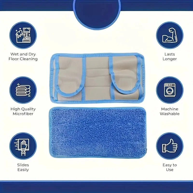 Reusable Microfiber Mop Replacement Pad, 2 Counts/set Washable & Durable Floor Mop Cloth, High Absorbency for Wet & Dry Cleaning
