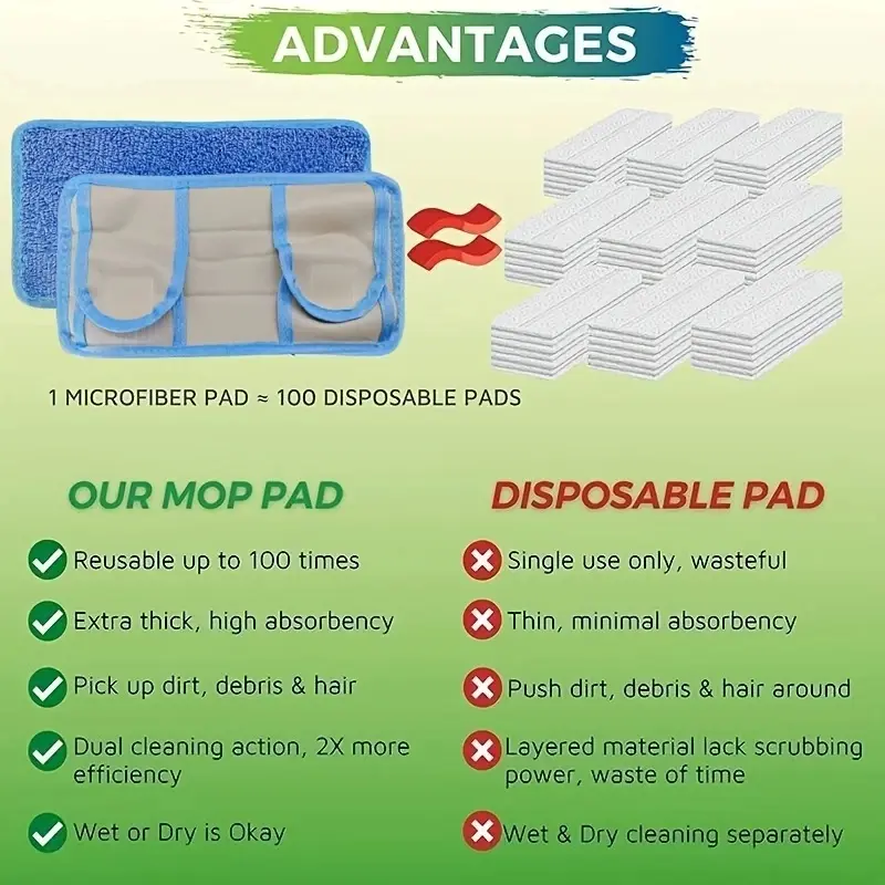 【High Absorbency】: These mop pads feature excellent water absorption capabilities, effectively picking up dirt and spills for cleaner floors.