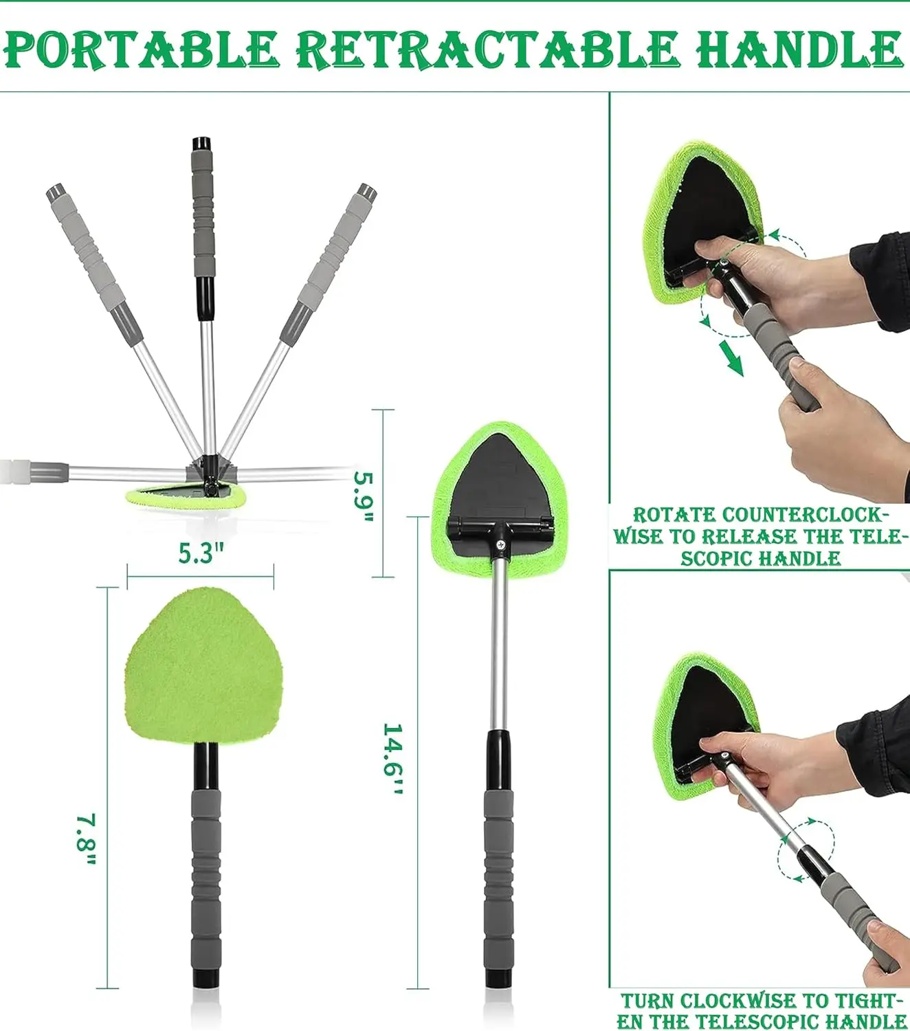 ·The handle of this windshield Cleaner can be adjusted in length, allowing you to easily extend or retract it as needed.At the same time, the handle has an anti-slip design.