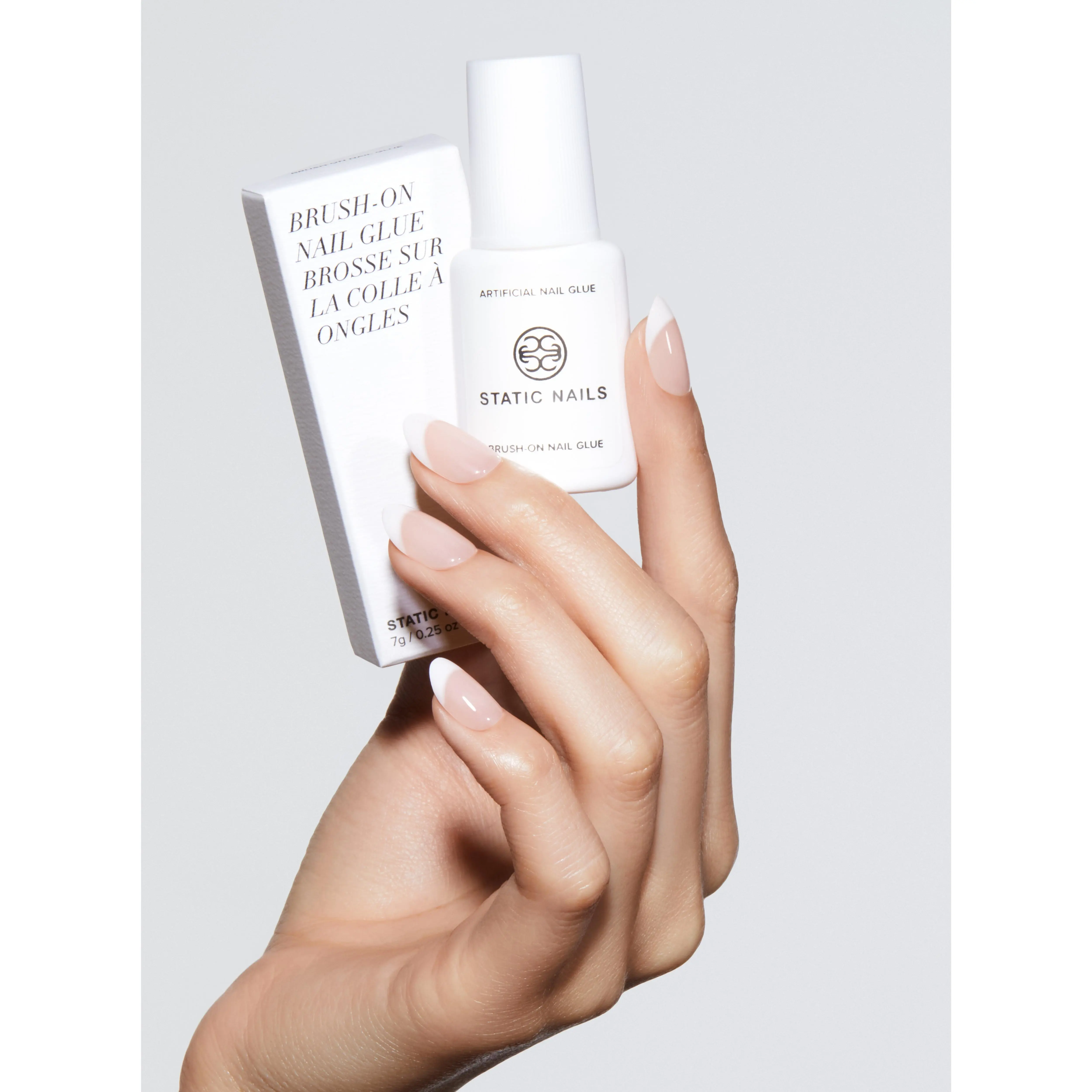 STEP 3: Apply an even layer of glue (included) to the back of the Static Nail and natural nail.