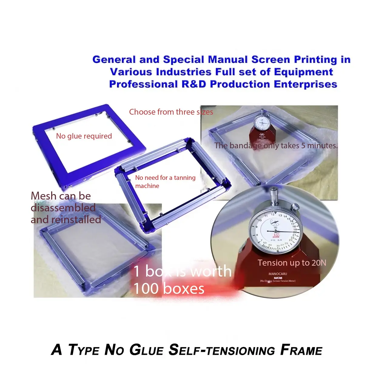 This frame is perfect for screen printing projects. Its self-adhesive and self-stretching properties make it easy to use. The integrated web frame ensures accurate printing results. Ideal for both beginners and professionals in screen printing.