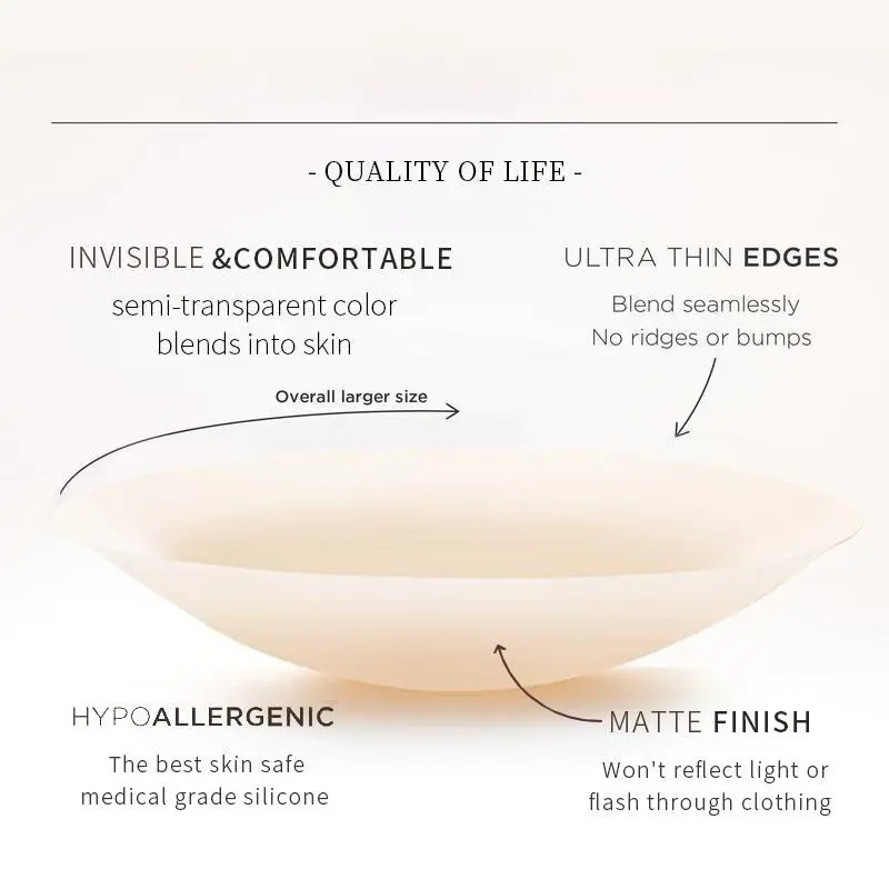 Our Reusable Silicone Adhesive Covers are designed to provide seamless support and discreet coverage, helping you feel secure and comfortable all day.