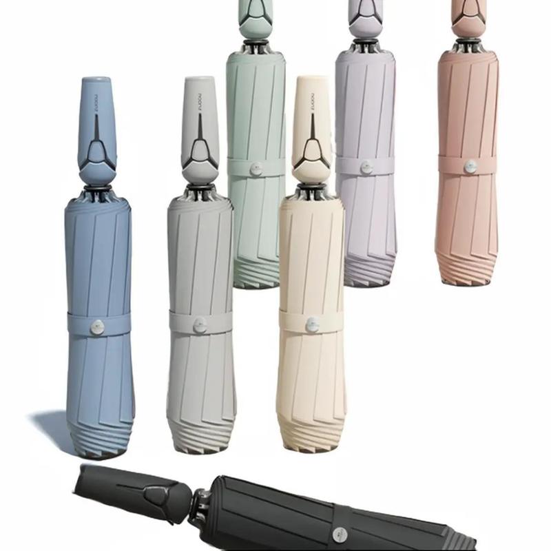 Traveling in the rain is more dry with this creative automatic reverse umbrella. It features a tri-fold reverse design with 10 bones and 280T impact cloth. The hydrophobic coating ensures water repellency. Made of aluminum alloy, it weighs 470 grams. Keep your family safe with its strong light reflection alert for passing vehicles.