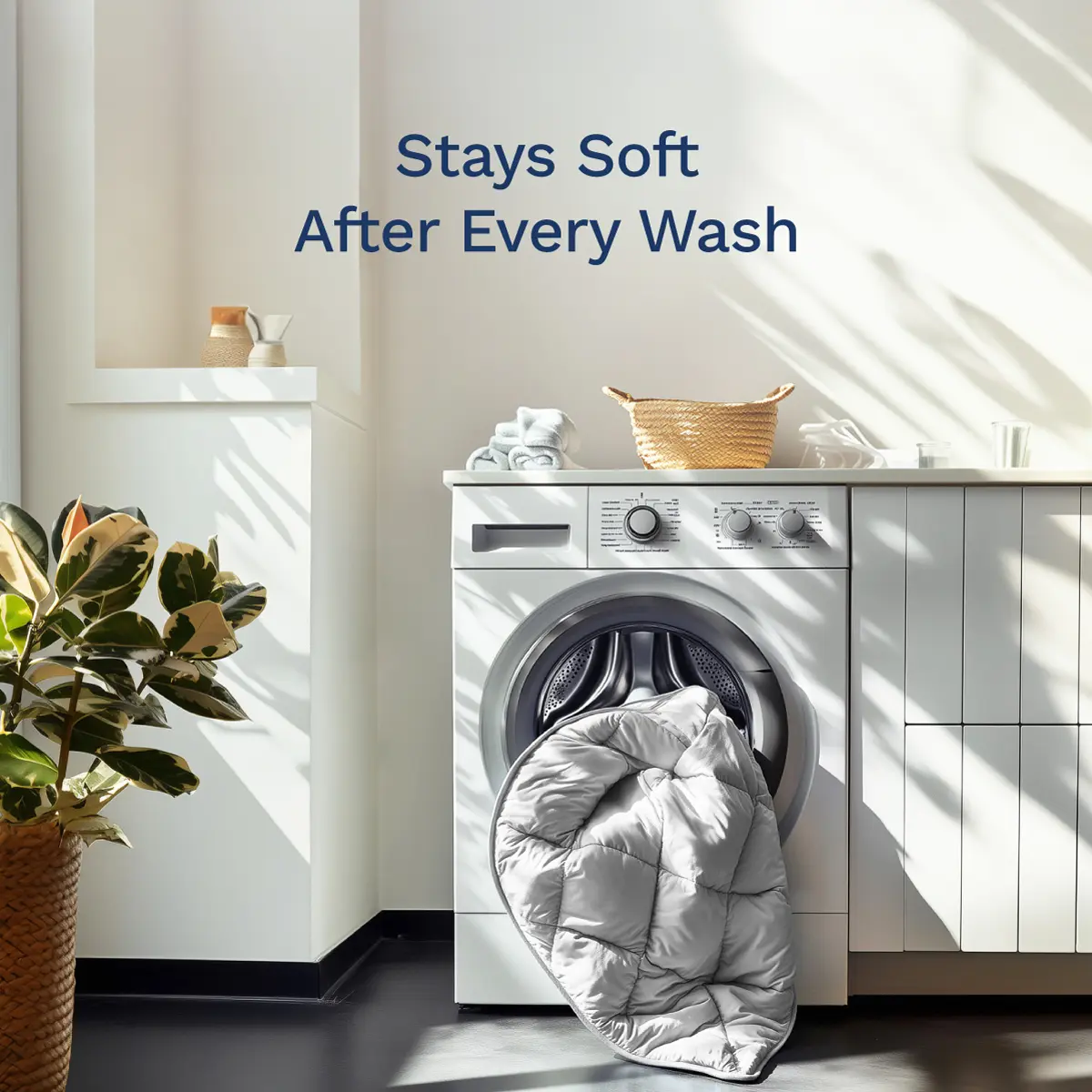 I’m absolutely in love with this comforter! It’s soft, lightweight, and somehow still super warm — perfect for every season. The fabric feels luxurious, and it gives my bed that “hotel comfort” vibe. I’ve washed it a few times already and it still looks brand new. If you’re looking for something cozy, stylish, and affordable, this is it. You won’t regret it!