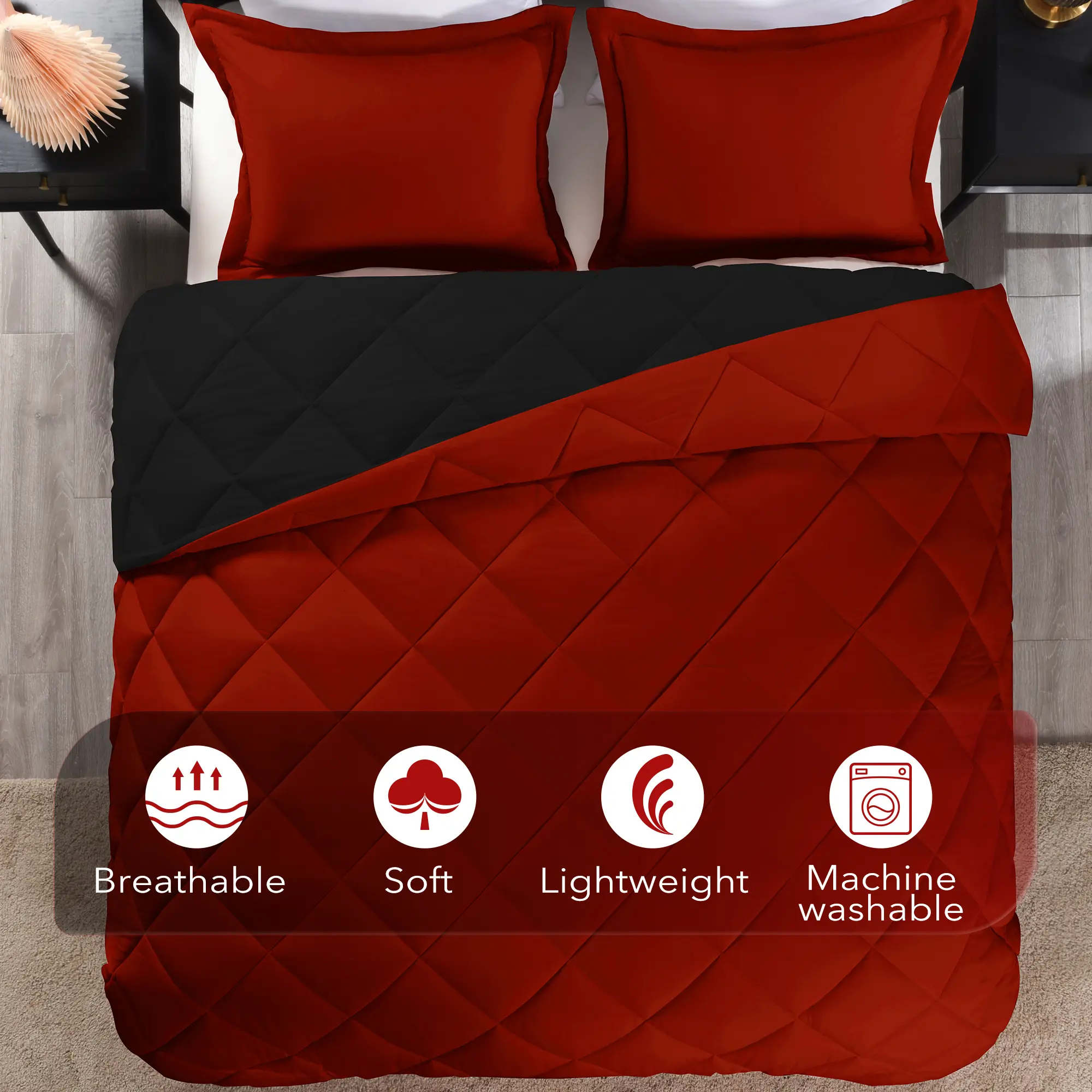 Soft & Comfortable 🌟- Made of brushed microfiber, ensuring extreme softness and coziness.- Filled with down alternative microfiber for a cloud-like softness.- Enjoy a sound sleep all through the night.