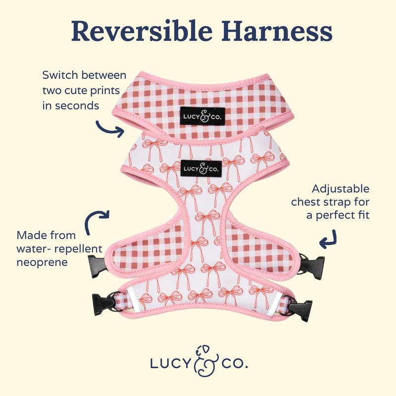 The Spring Season is upon us and so are pretty in pink walks! Welcome in the spring with our Take a Bow Reversible Dog Harness. Made with water-repellant neoprene, this harness features two prints in one and it's easy to swap to the other side for a brand new look! Explore our reversible harnesses for an easy-care for fit that moves with all of your pups natural wiggles and shakes.
