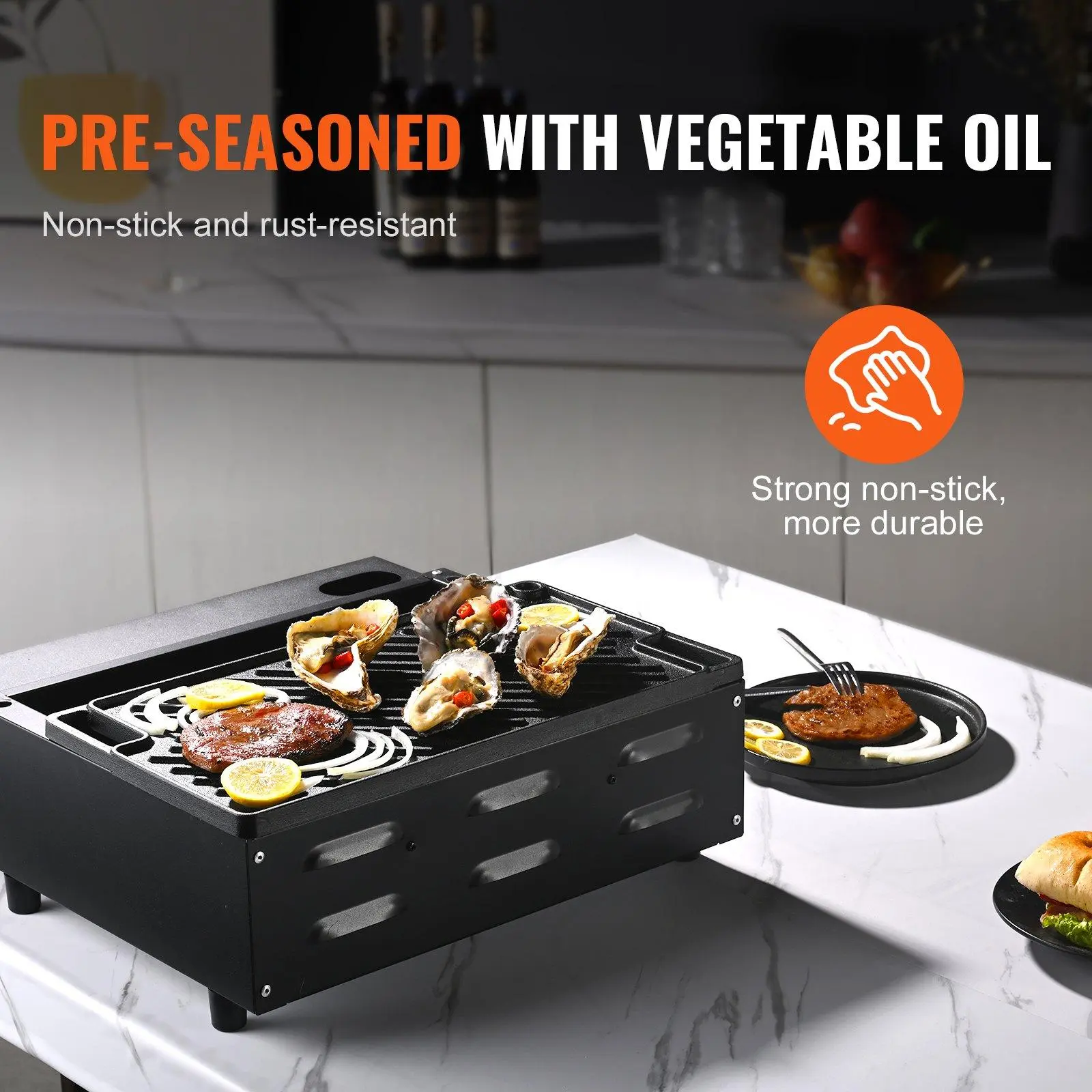 ·User-friendly Design: Features a textured design, double-sided frying pan, and hollow handles for convenient use, allowing you to master tender and delicious dishes. This flat top for grill enhances the flavor of food.