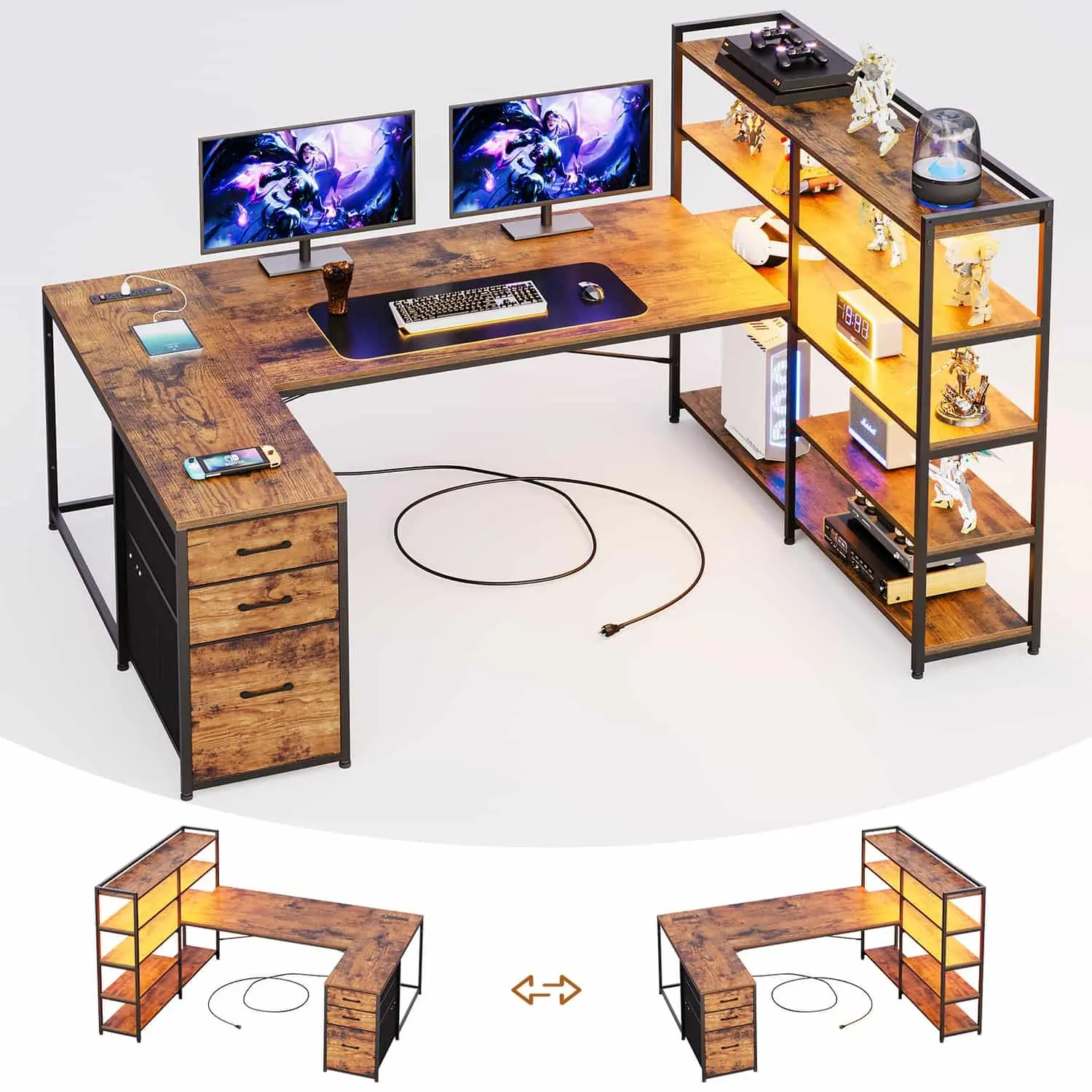Coming with 3 fabric drawers, 5-tier storage shelves with powerful storage space. The 5-tier storage can place files, books, leaving spacious space for writing, paperwork and other home office activities. This l shaped desk provides enough room to study, work or other office activities.